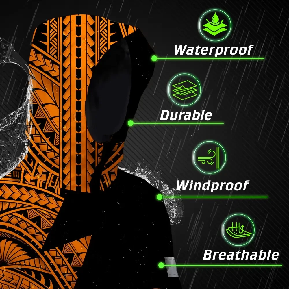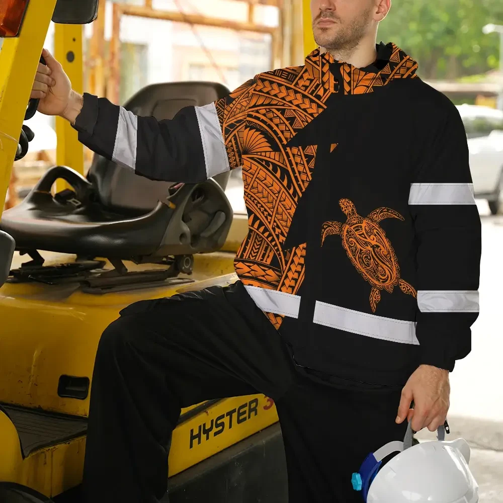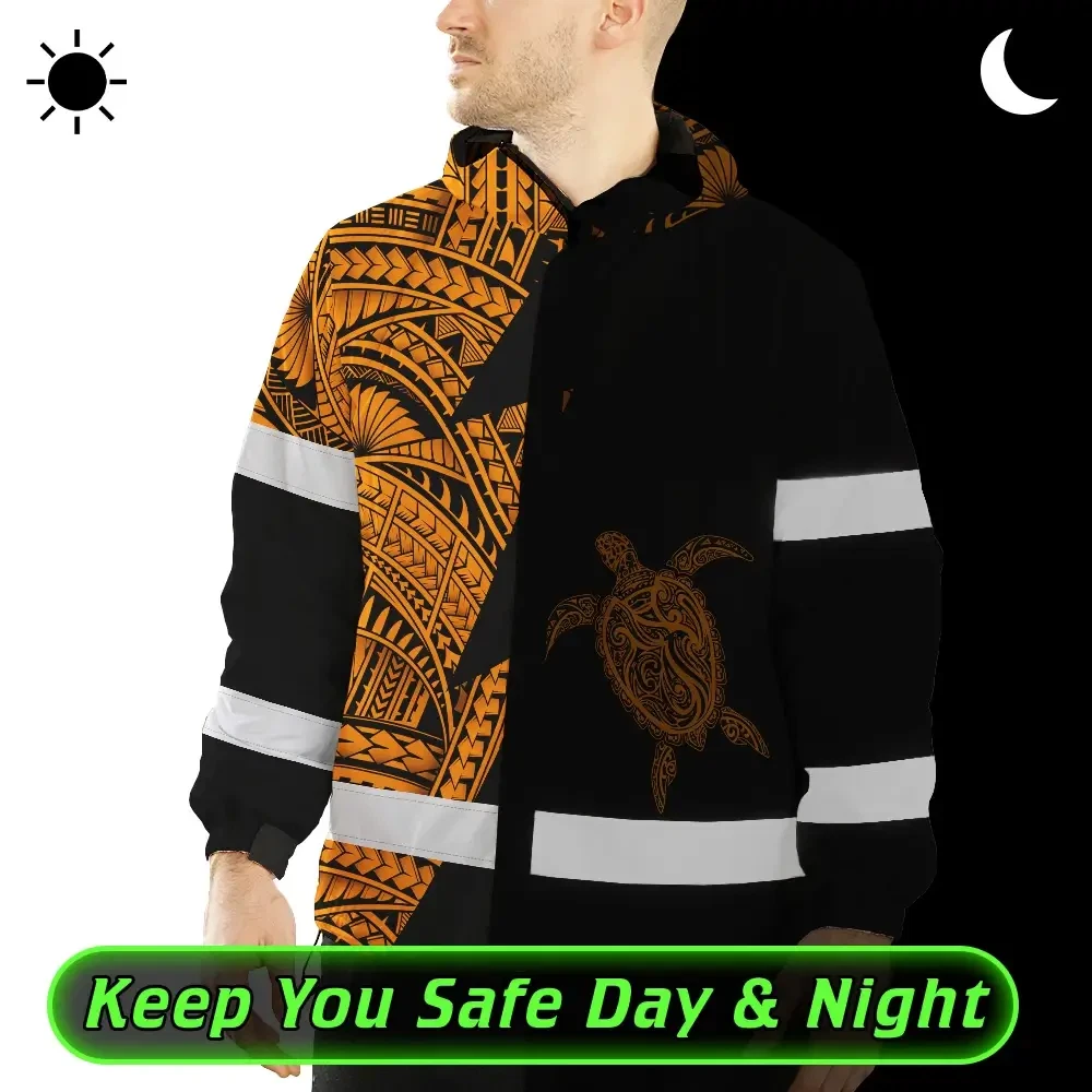 Hi Vis Jacket Waterproof Reflective Tapes Orange Neon Turtle Hawaii Custom Name Safety Workwear For Workers, Truckers, Operators