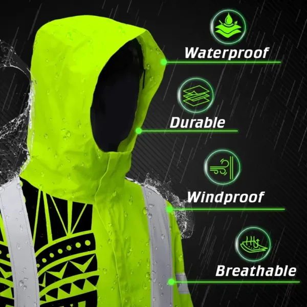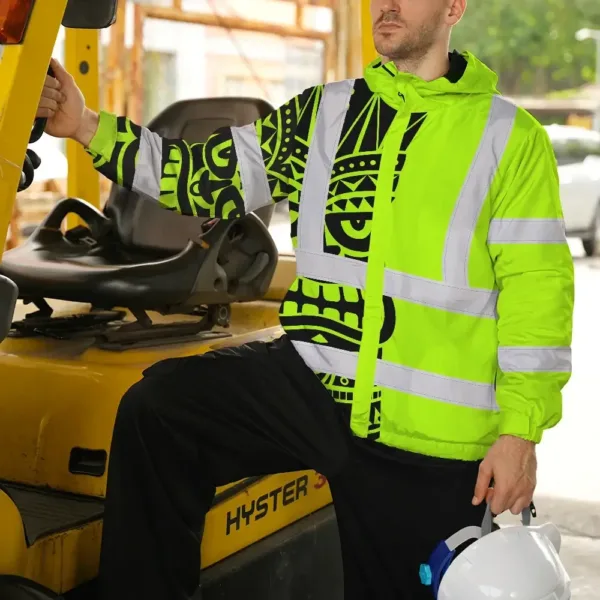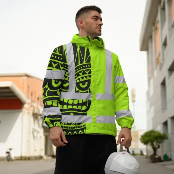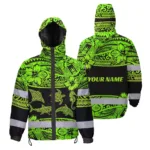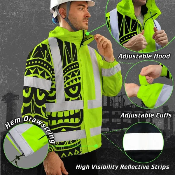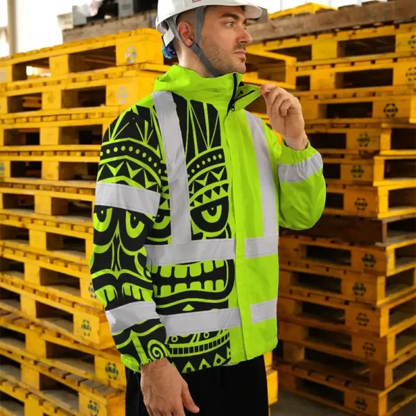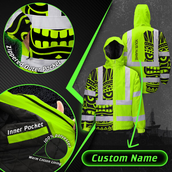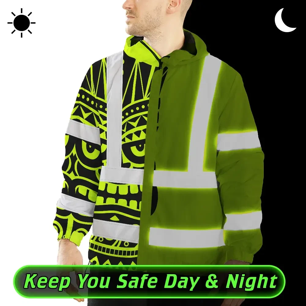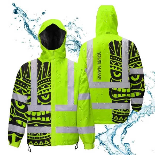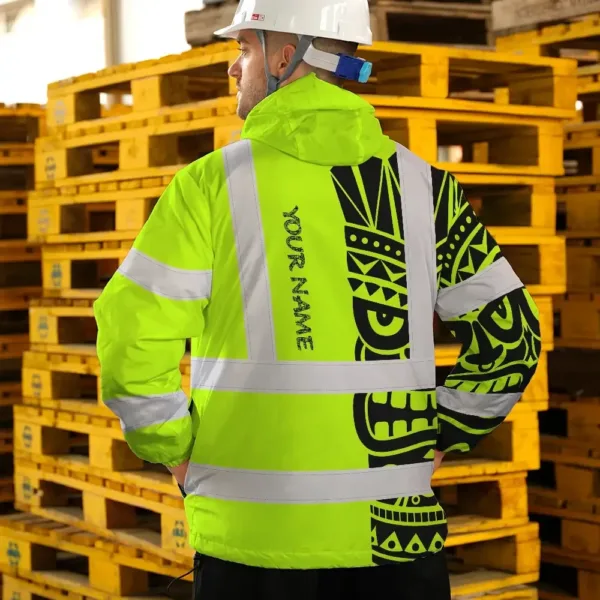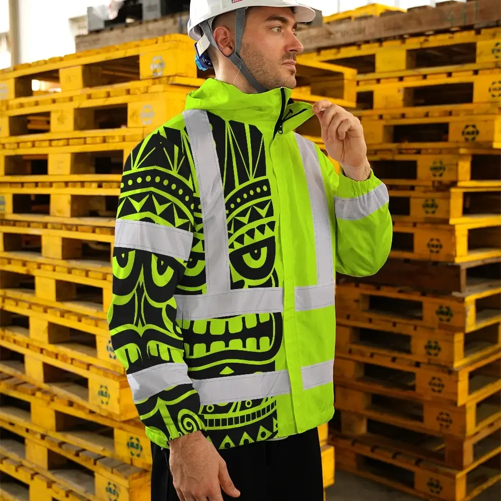 Hi Vis Jacket Waterproof Reflective Tapes TiKi Hawaiian Polynesian Tribal Custom Name Safety Workwear For Workers, Truckers, Operators