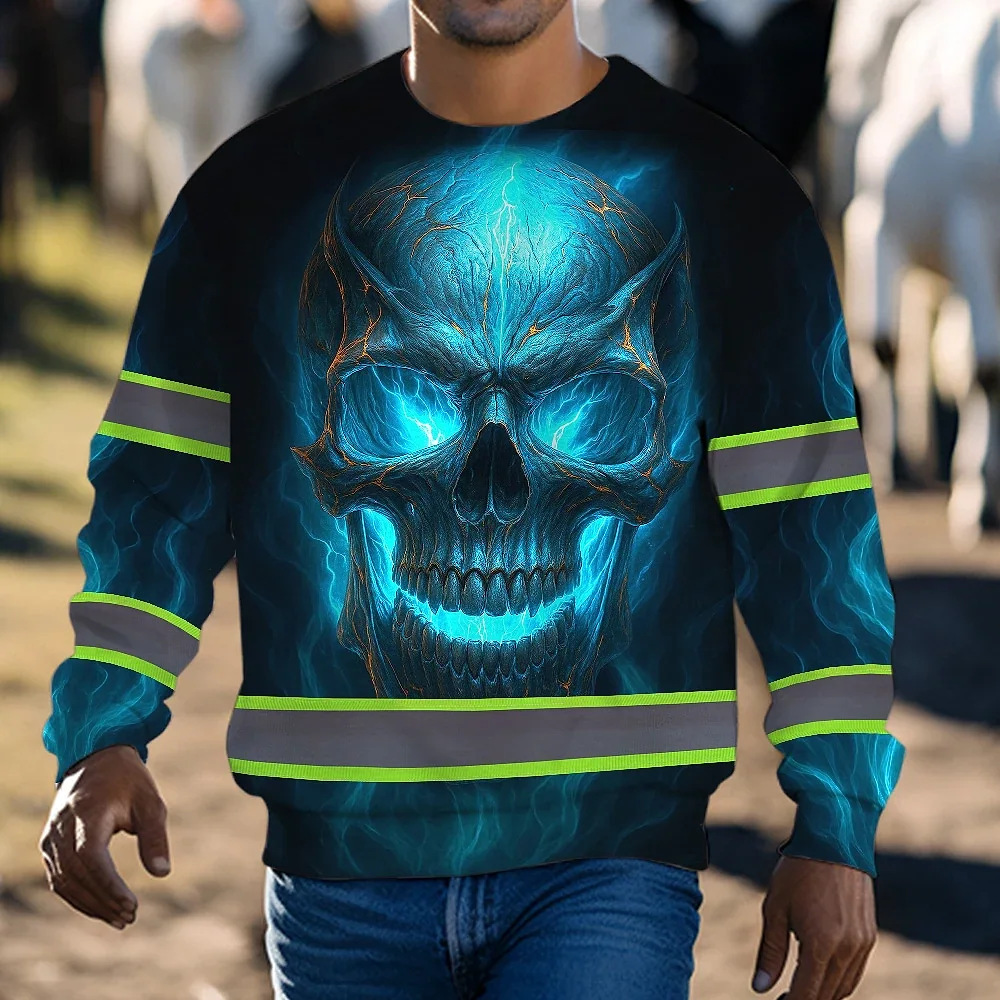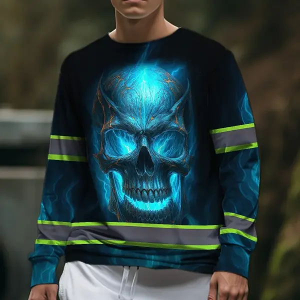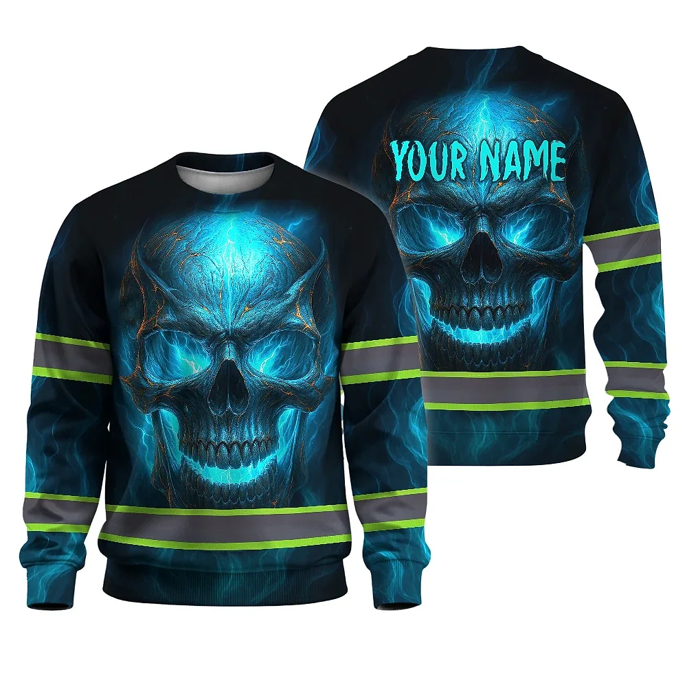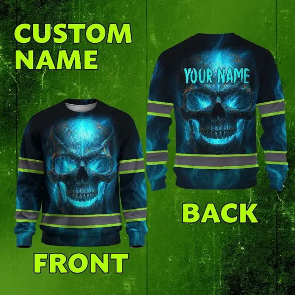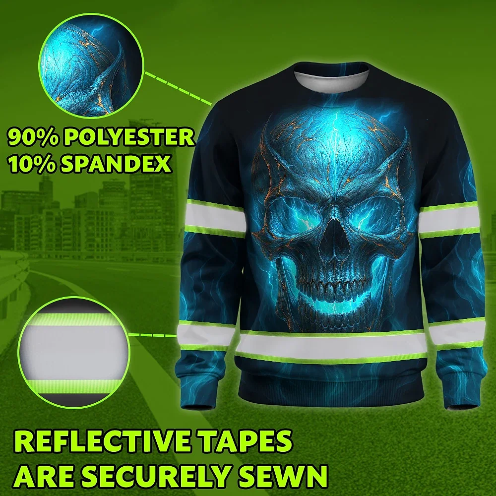 Hi Vis Long Sleeve Reflective Tapes Gradient Blue Neon Skull Custom Name Safety Workwear For Workers, Runners, Cyclists