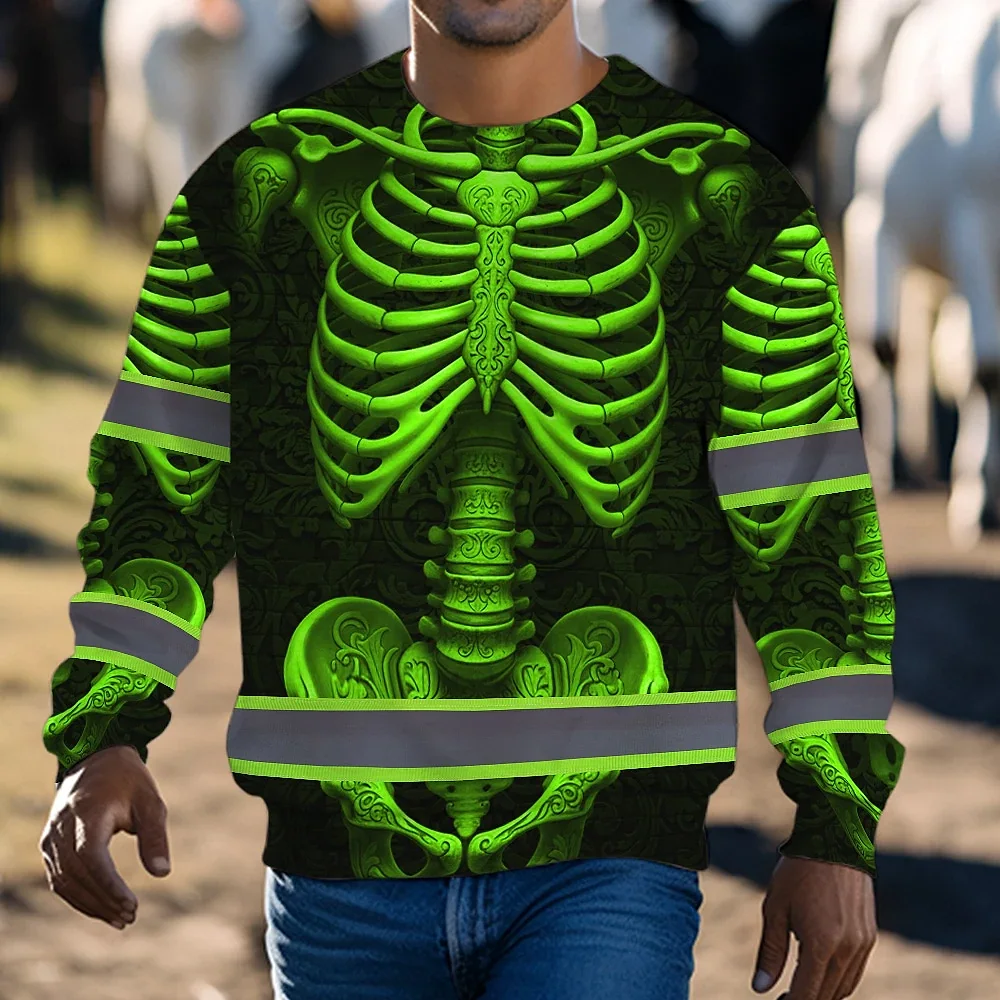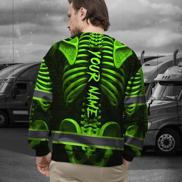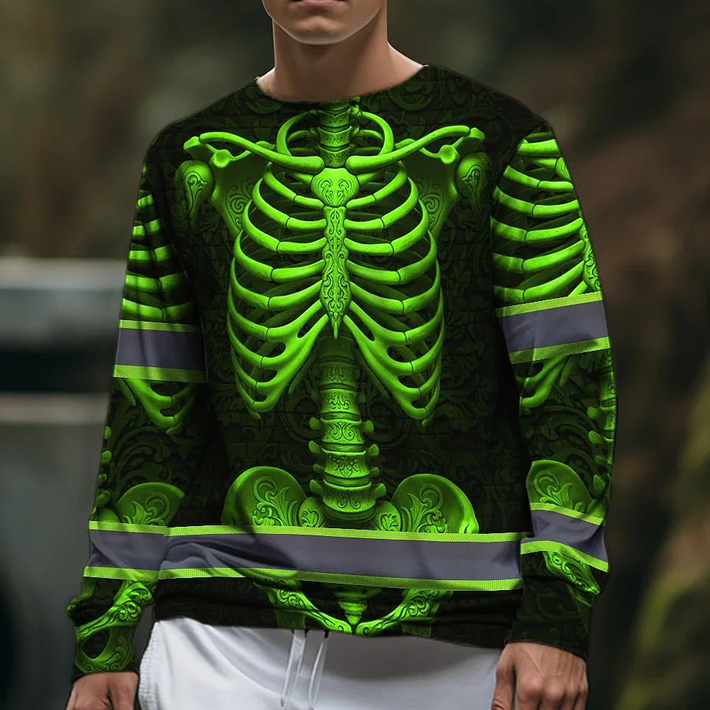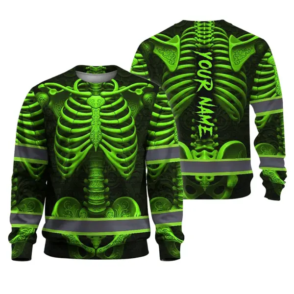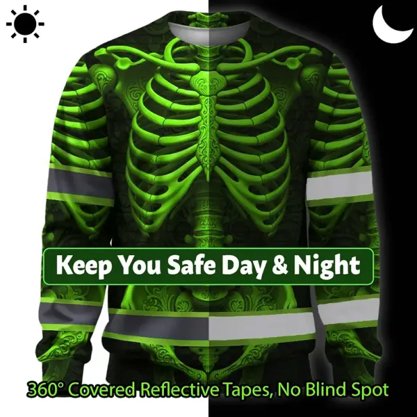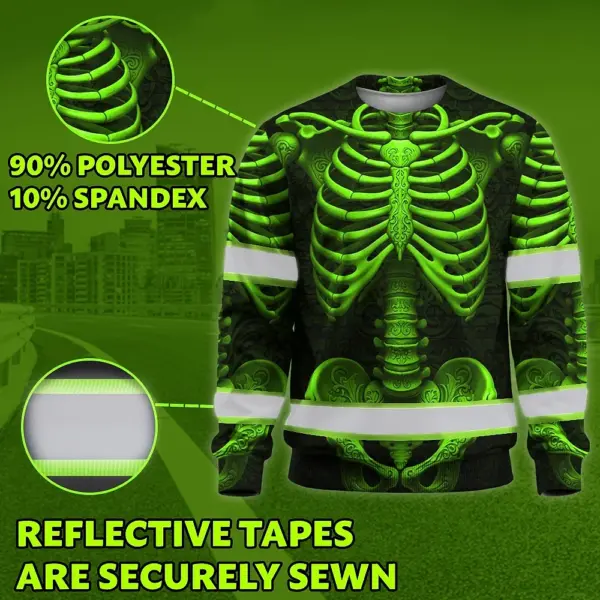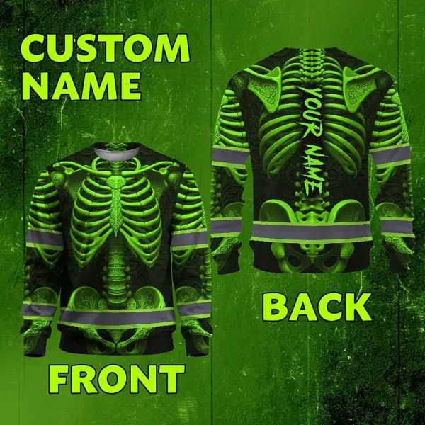 Hi Vis Long Sleeve Reflective Tapes Green Neon Bone Skull Custom Name Safety Workwear For Workers, Runners, Cyclists