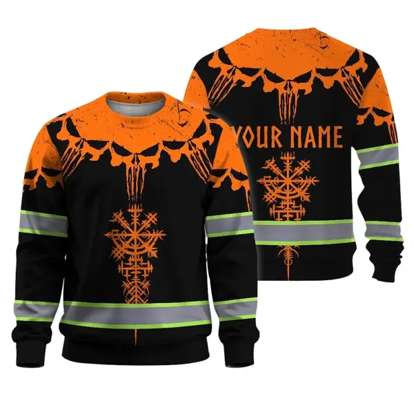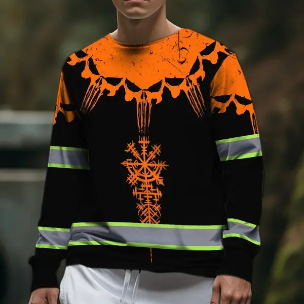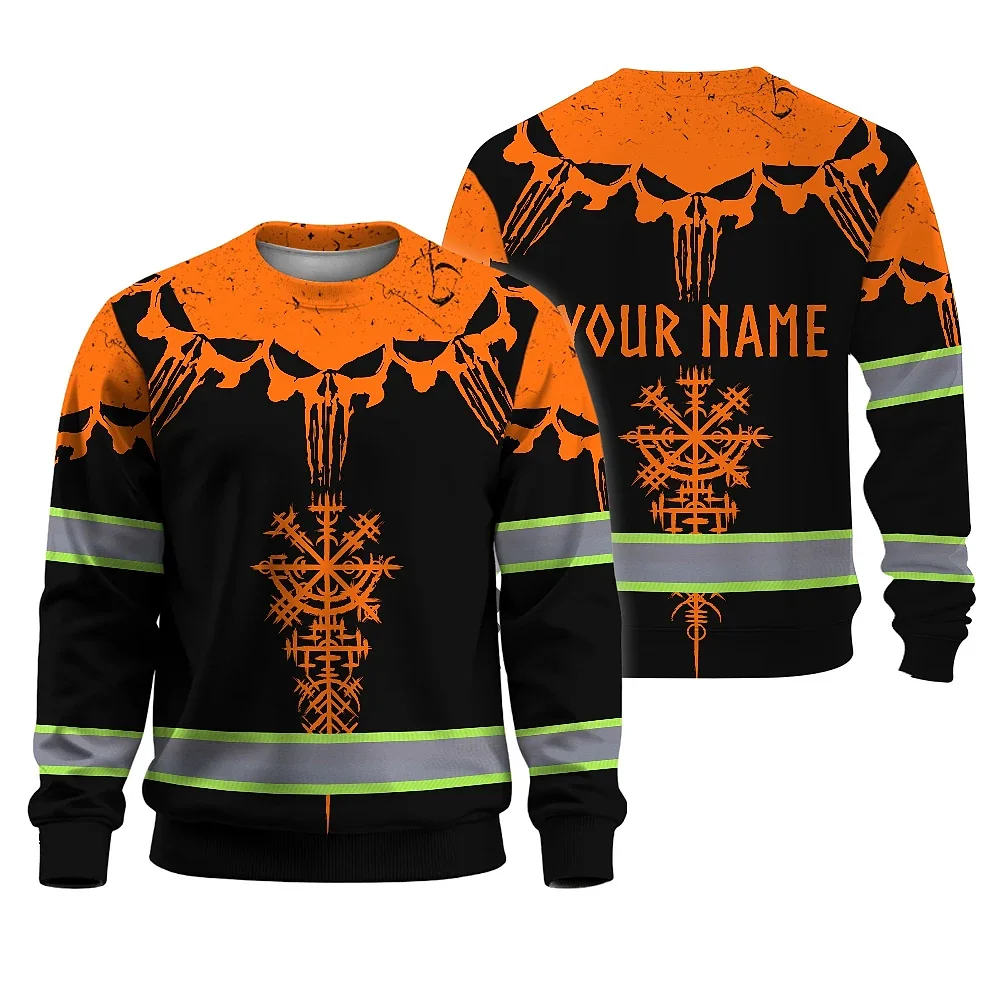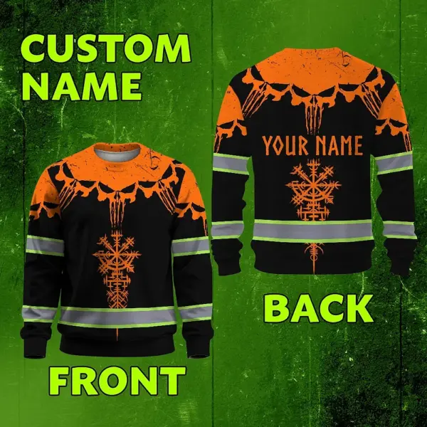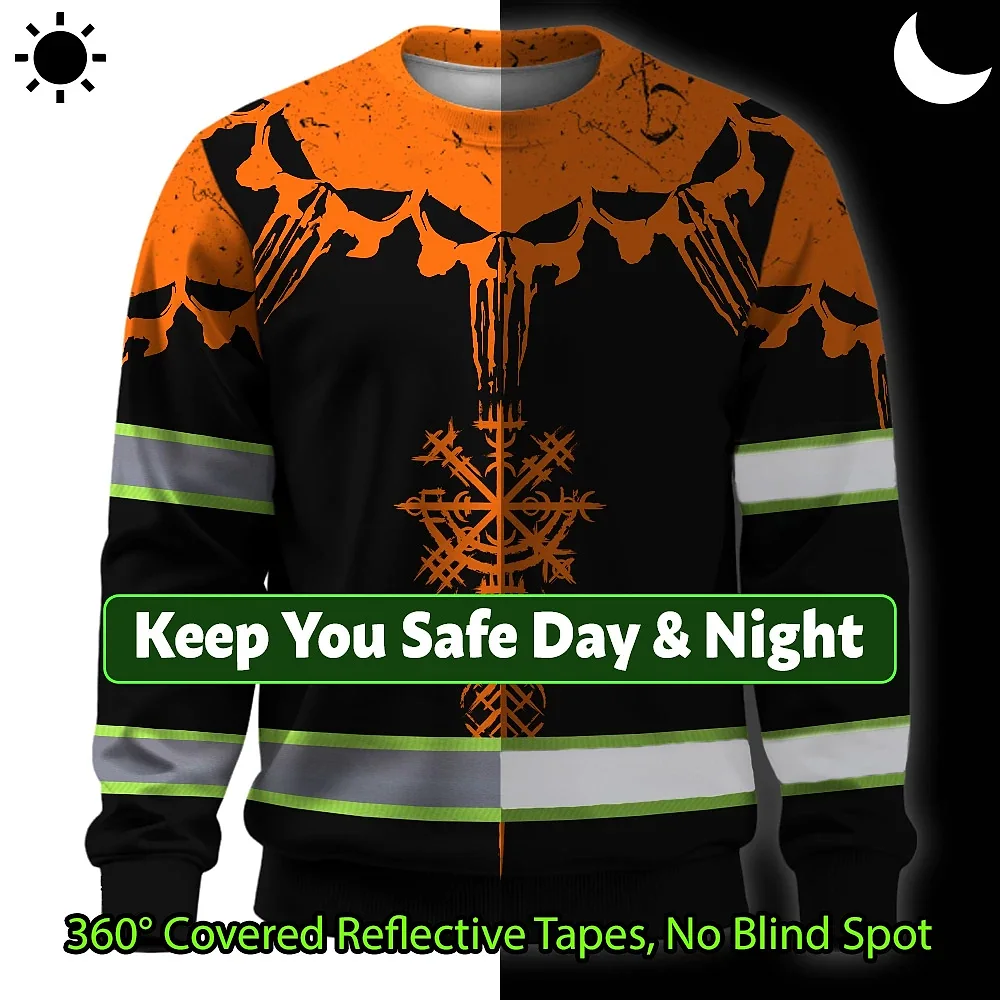 Hi Vis Long Sleeve Reflective Tapes Orange Neon Skull Custom Name Safety Workwear For Workers, Truckers, Operators