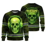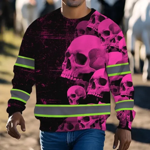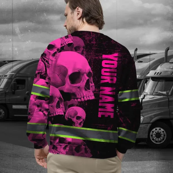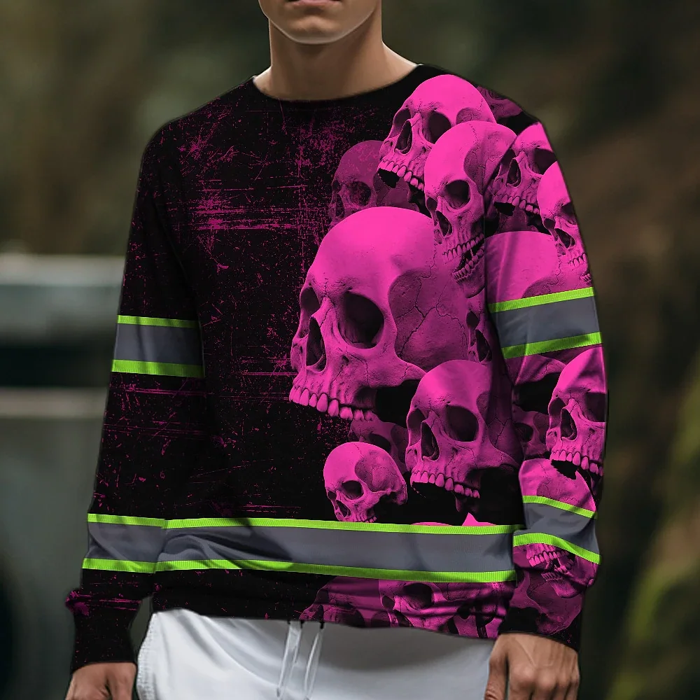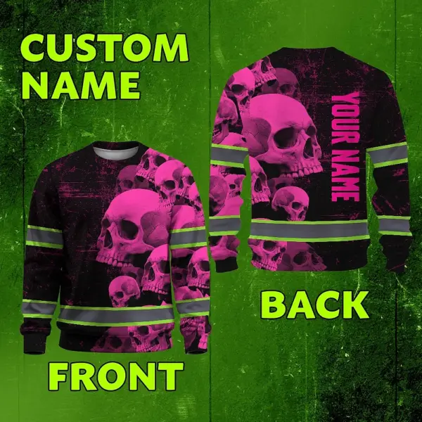 Hi Vis Long Sleeve Reflective Tapes Pink Neon Skull Custom Name Safety Workwear For Workers, Runners, Cyclists