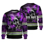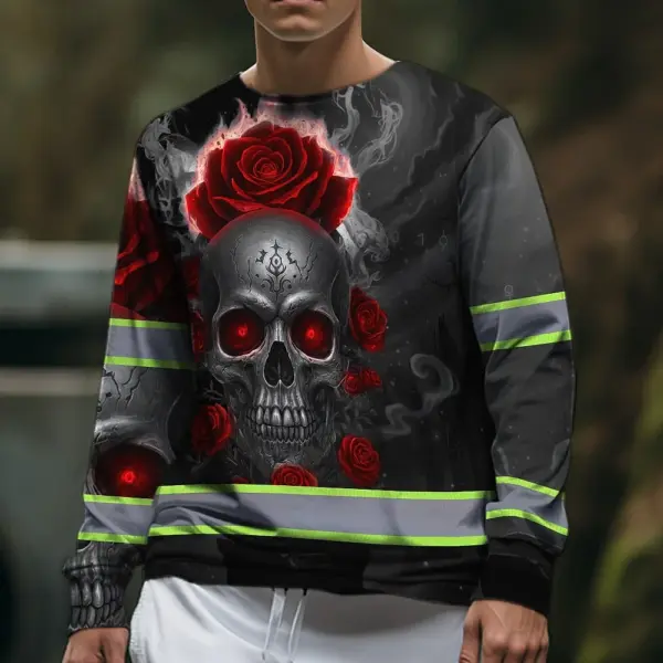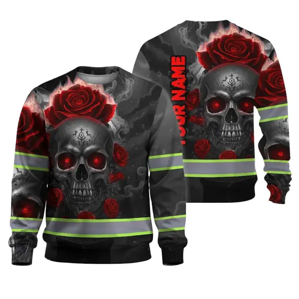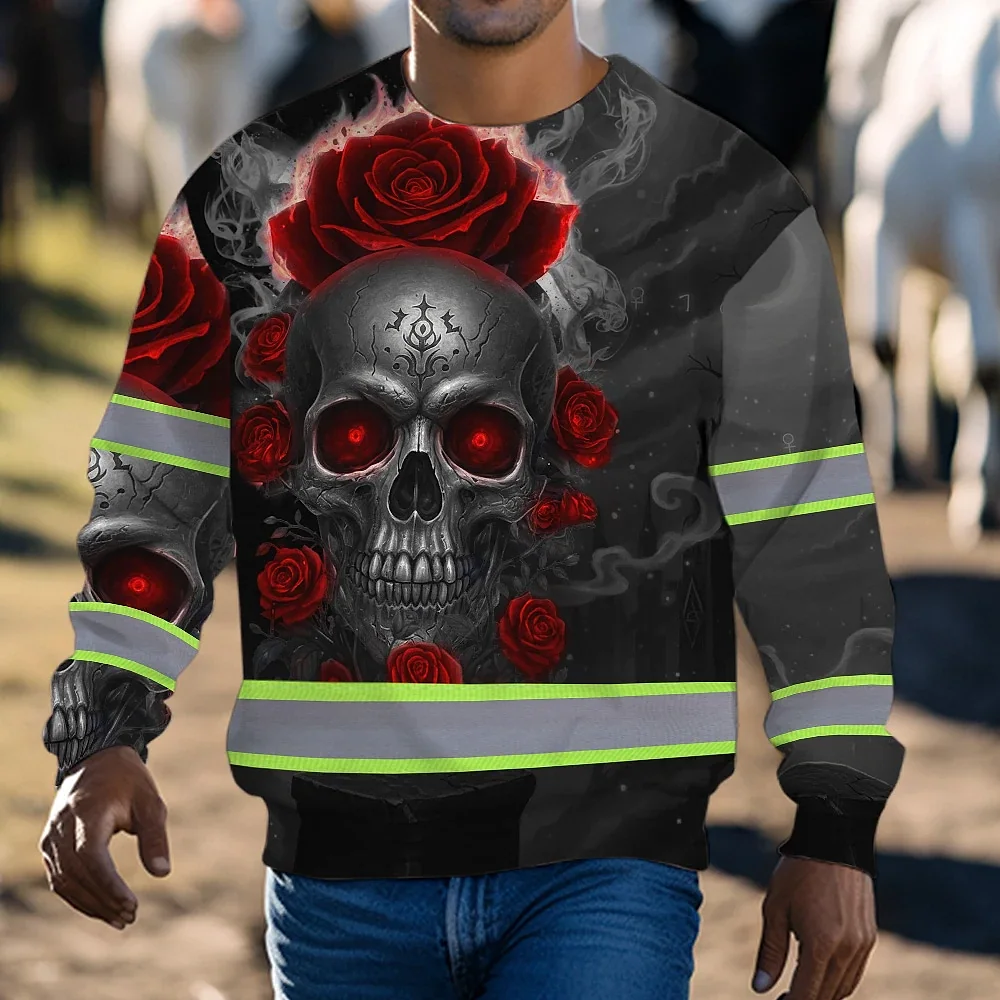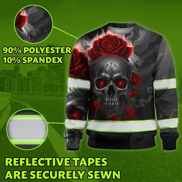 Hi Vis Long Sleeve Reflective Tapes Red Neon Grey Skull Custom Name Safety Workwear For Workers, Truckers, Operators