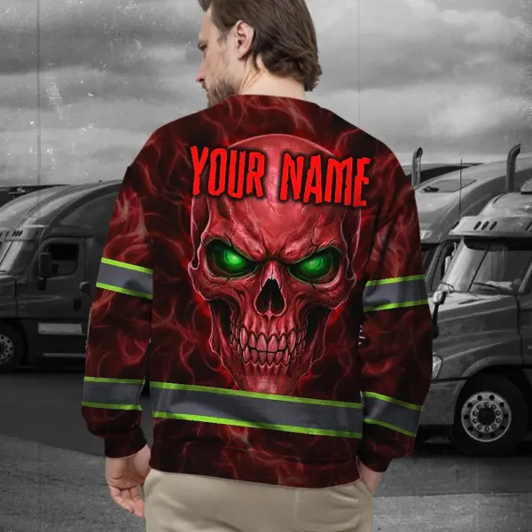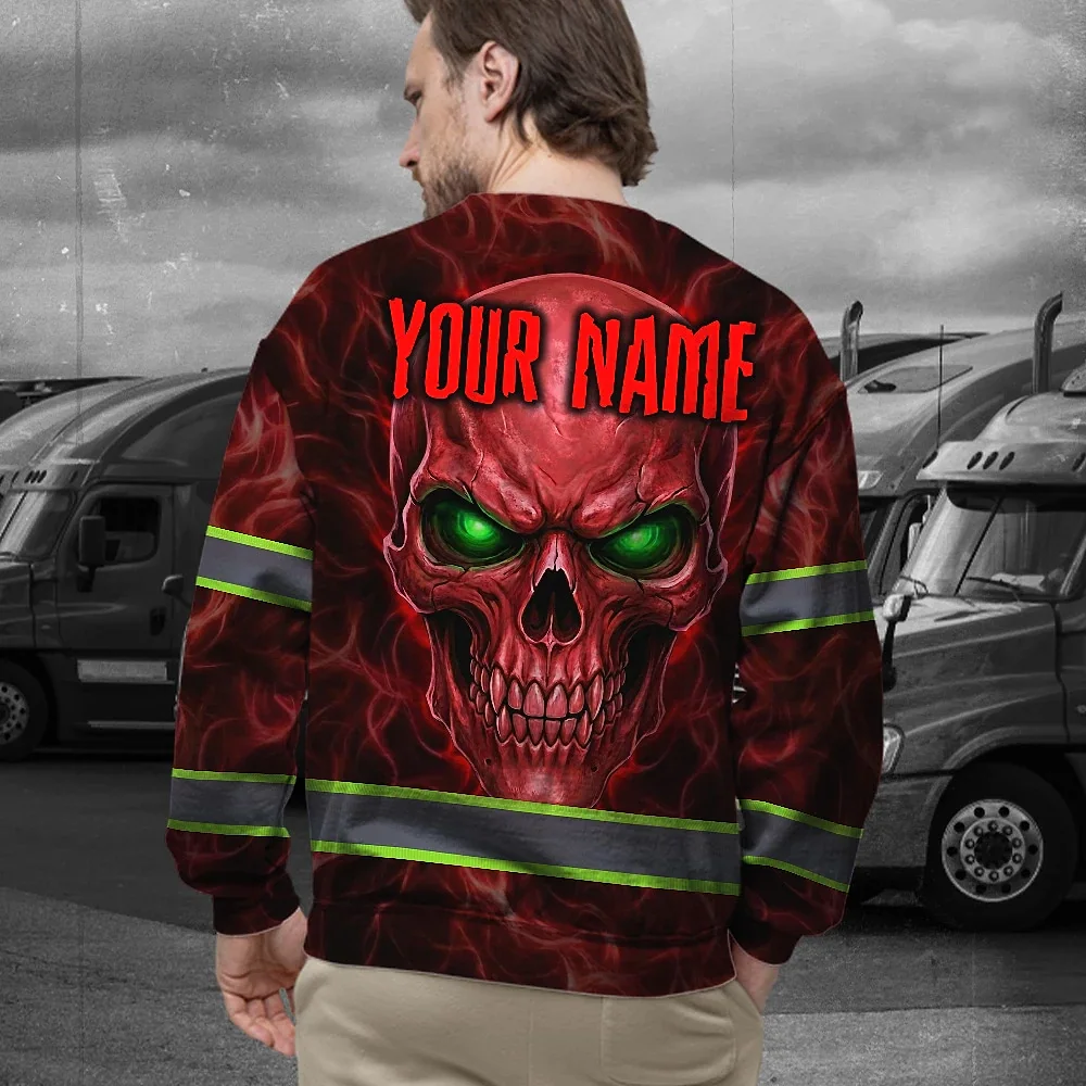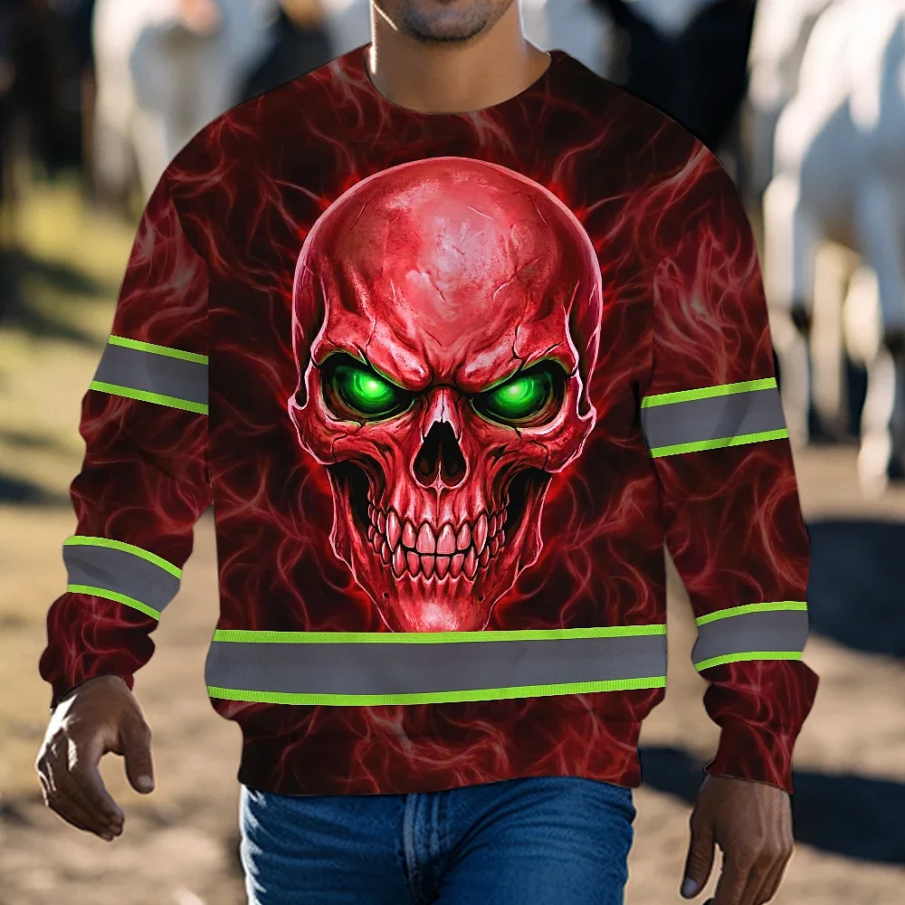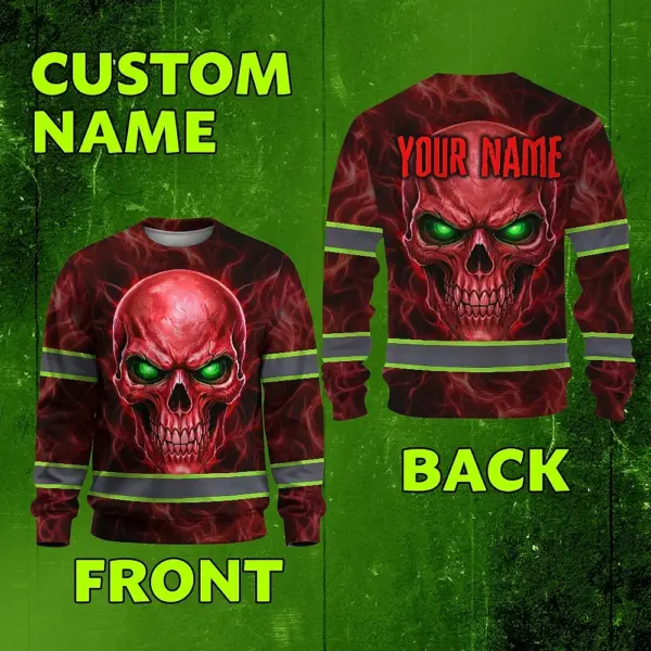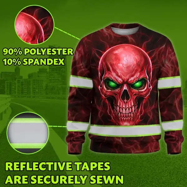 Hi Vis Long Sleeve Reflective Tapes Red Neon Skull Custom Name Safety Workwear For Workers, Runners, Cyclists