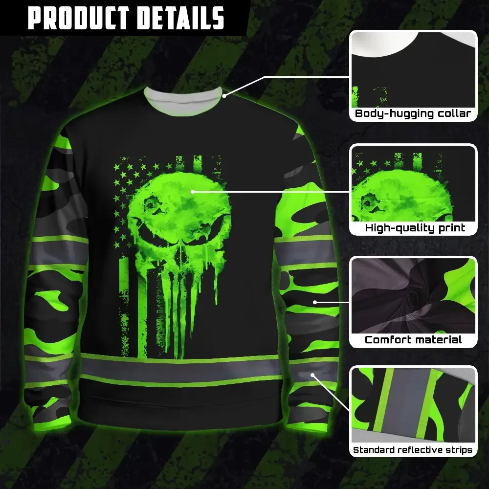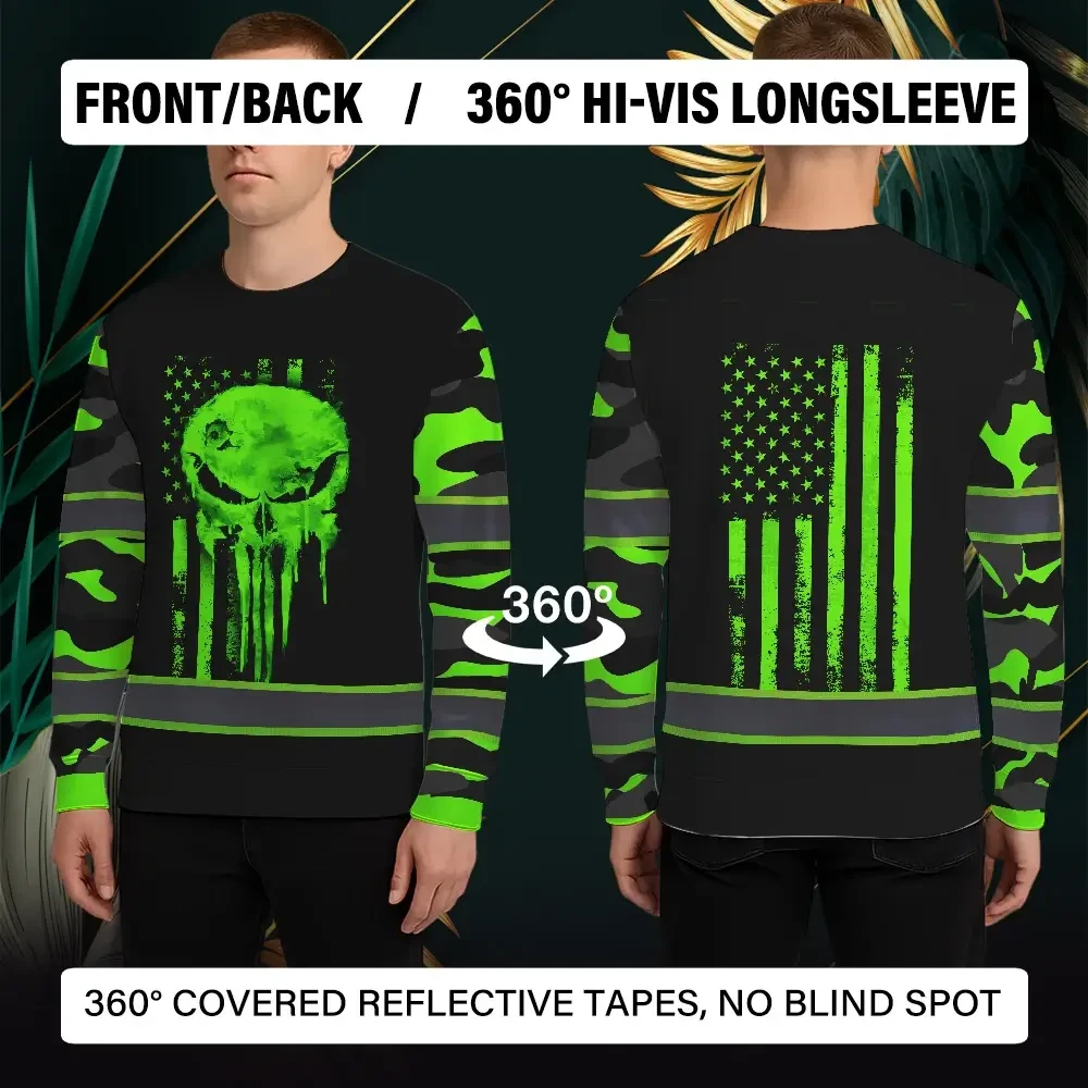 Select options This product has multiple variants. The options may be chosen on the product pageHi Vis Long Sleeve Shirts Reflective Green Camo Safety workwear For Workers, Runners, Truckers, Skull Lovers