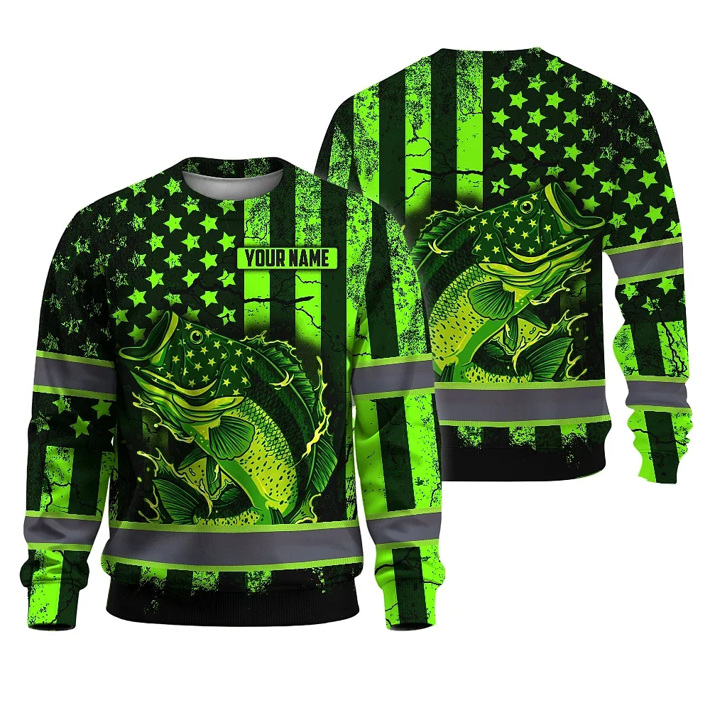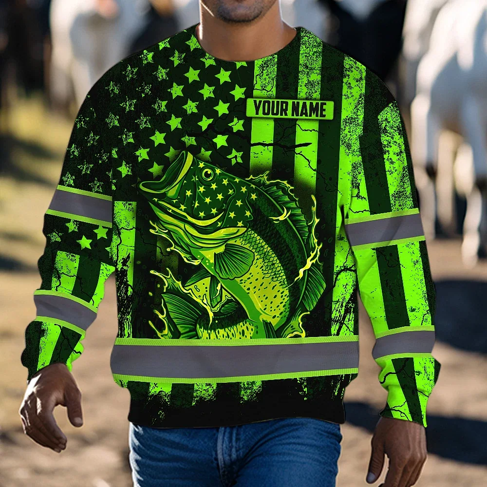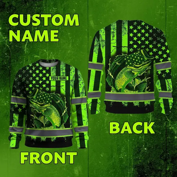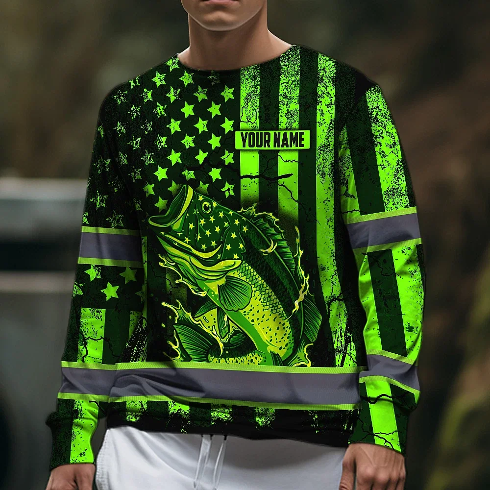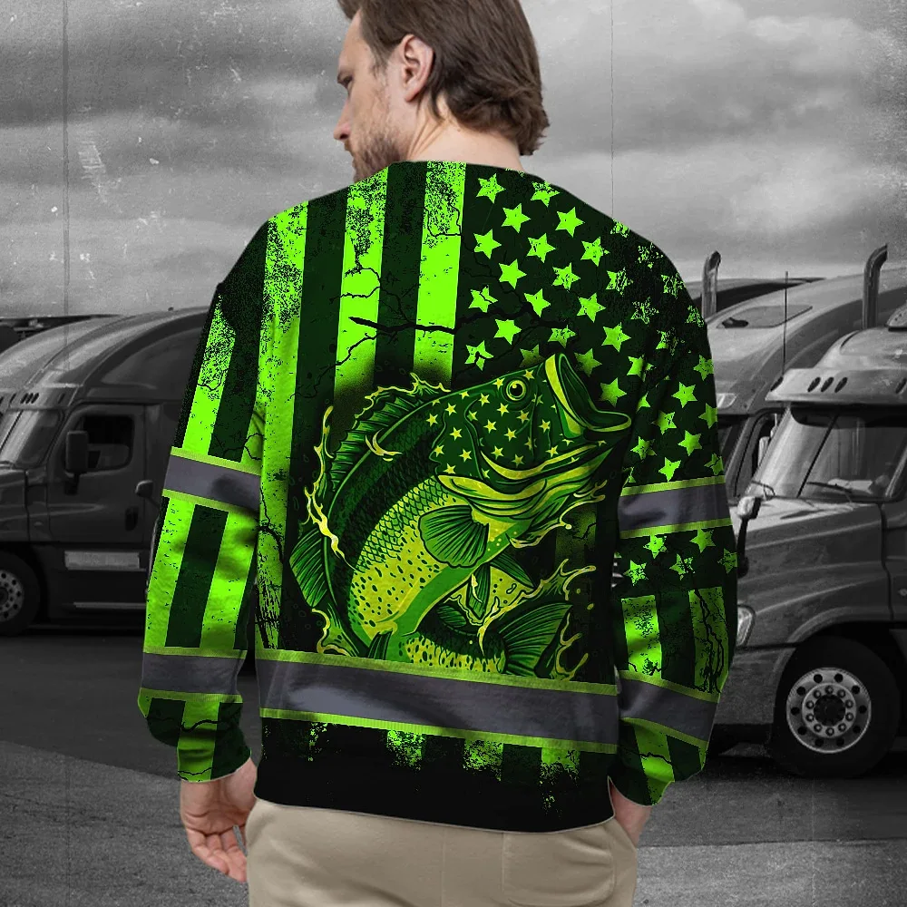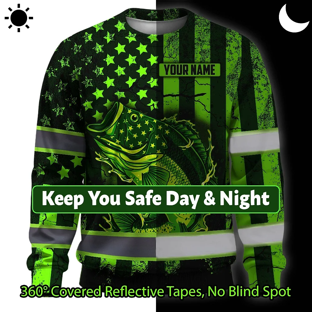 Hi Vis Long Sleeve Shirt Reflective Fishing Green Neon Safety Workwear For Fishing Lovers Workers, Runners, Cyclists, Trucker, Operator, Patriotic