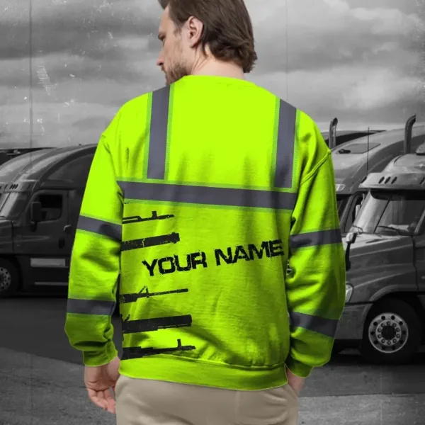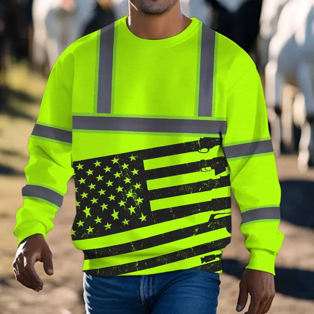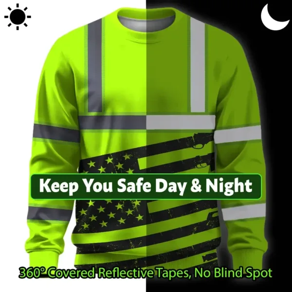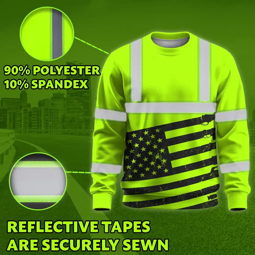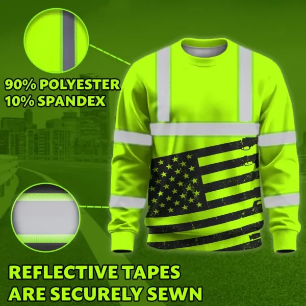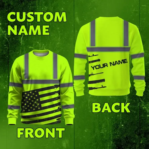 Hi Vis Long Sleeve Shirt Reflective Green Gun USA Flag Custom Name Safety Key Features