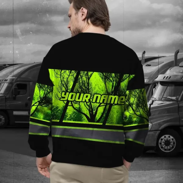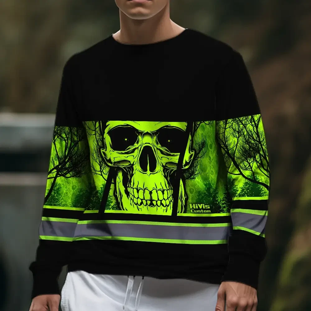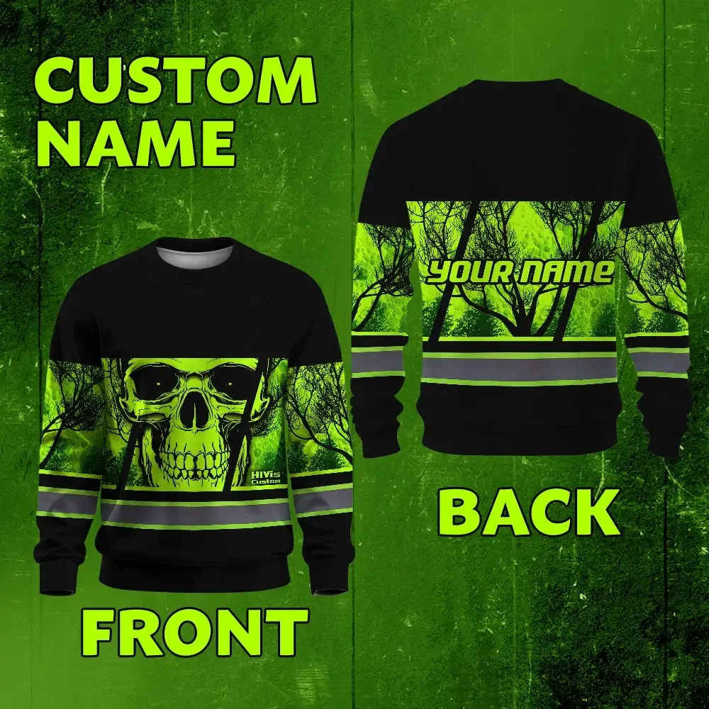 Hi Vis Long Sleeve Shirt Reflective Green Skull USA Flag Custom Name