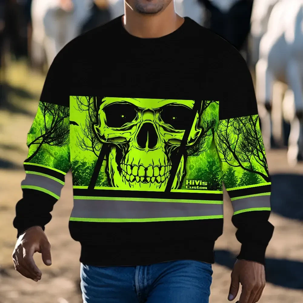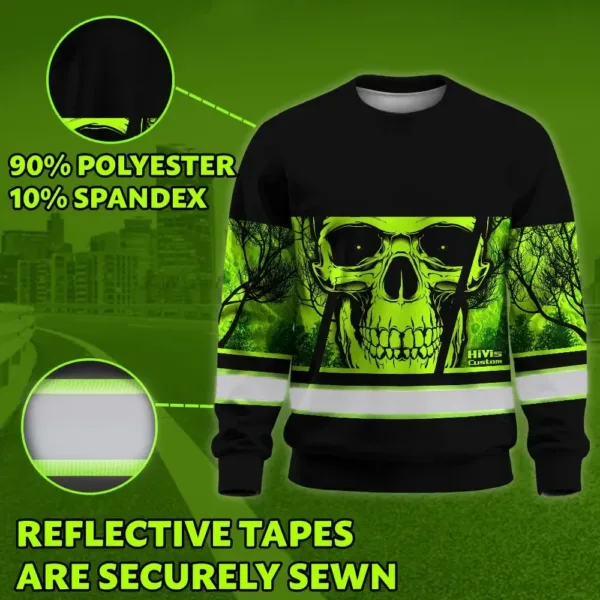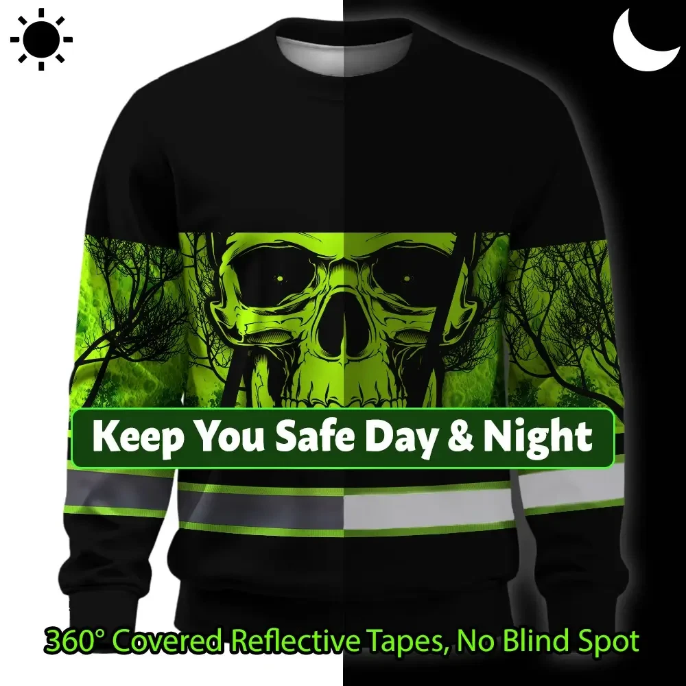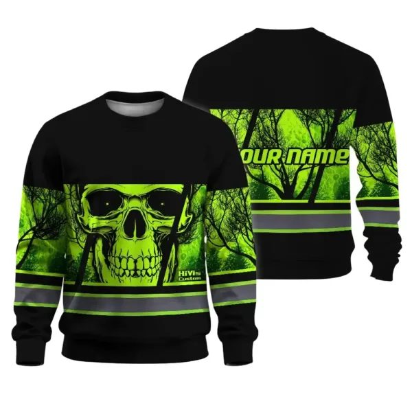 Hi Vis Long Sleeve Shirt Reflective Green Skull USA Flag Custom Name Key Features