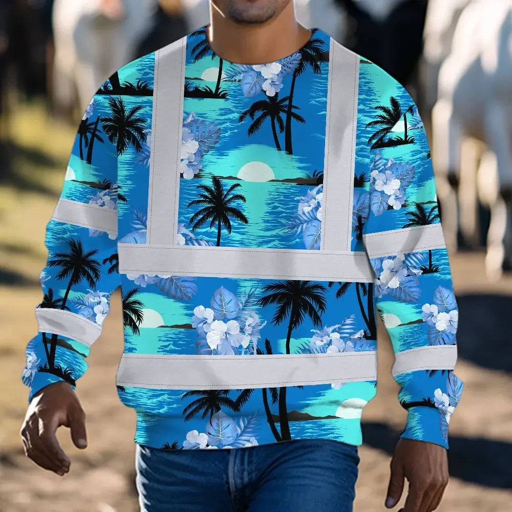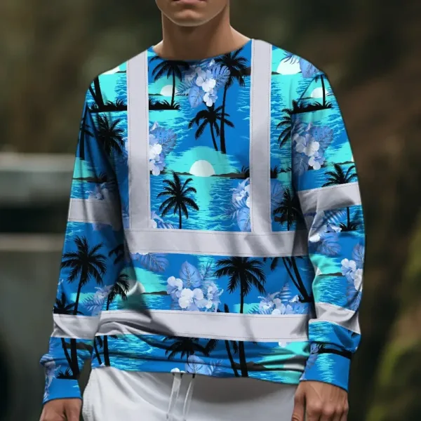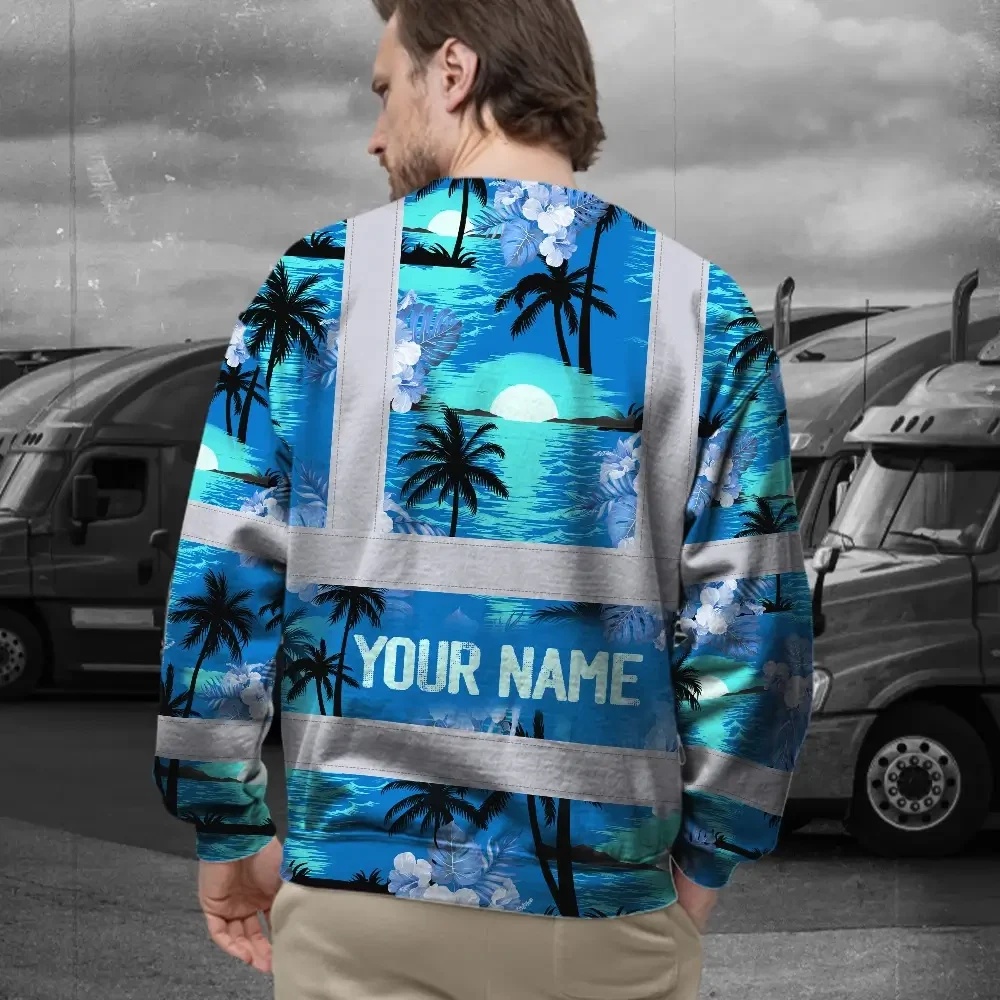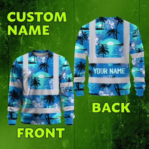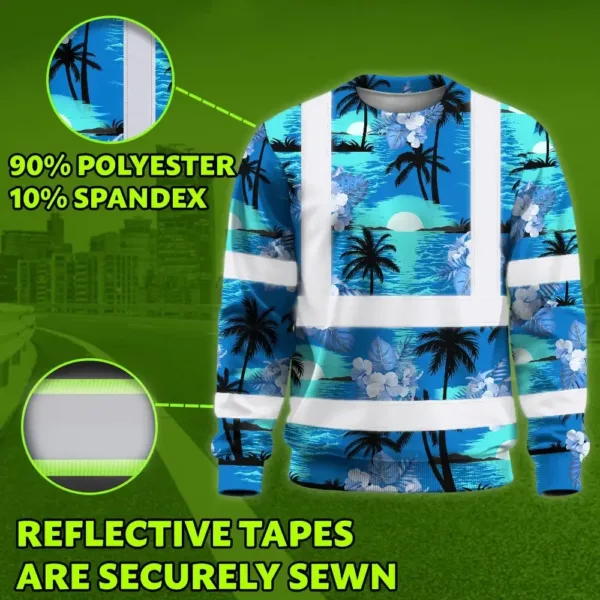 Hi Vis Long Sleeve Shirt Reflective Tapes Blue Neon Flowers 4 Custom Name