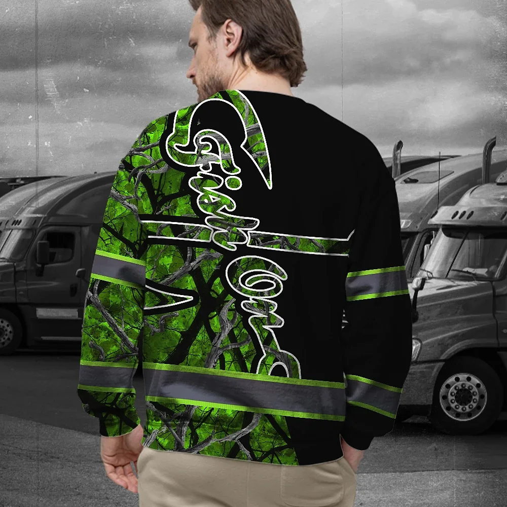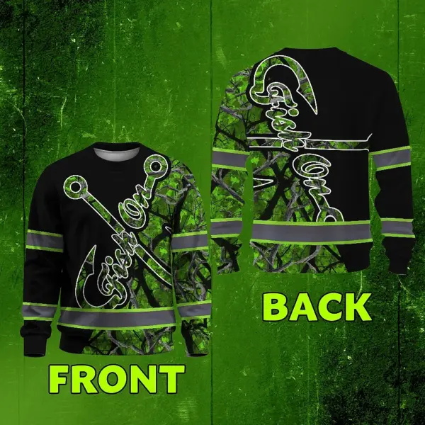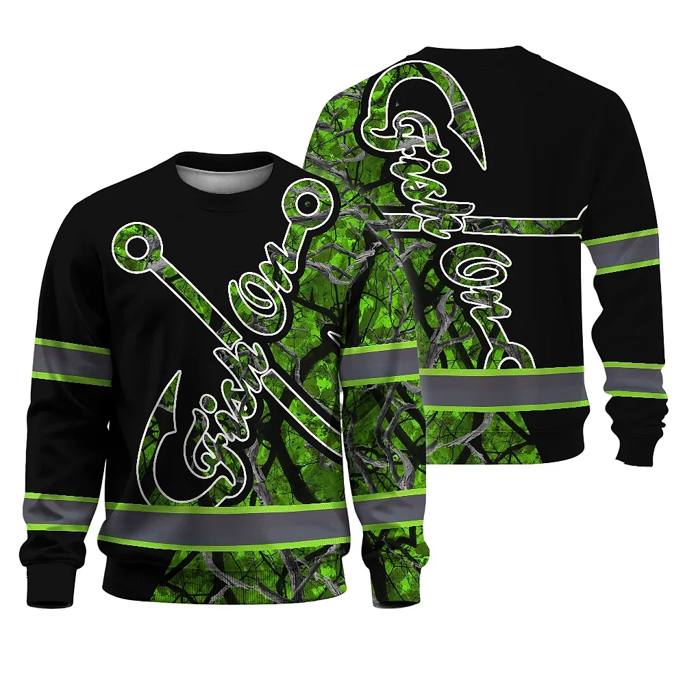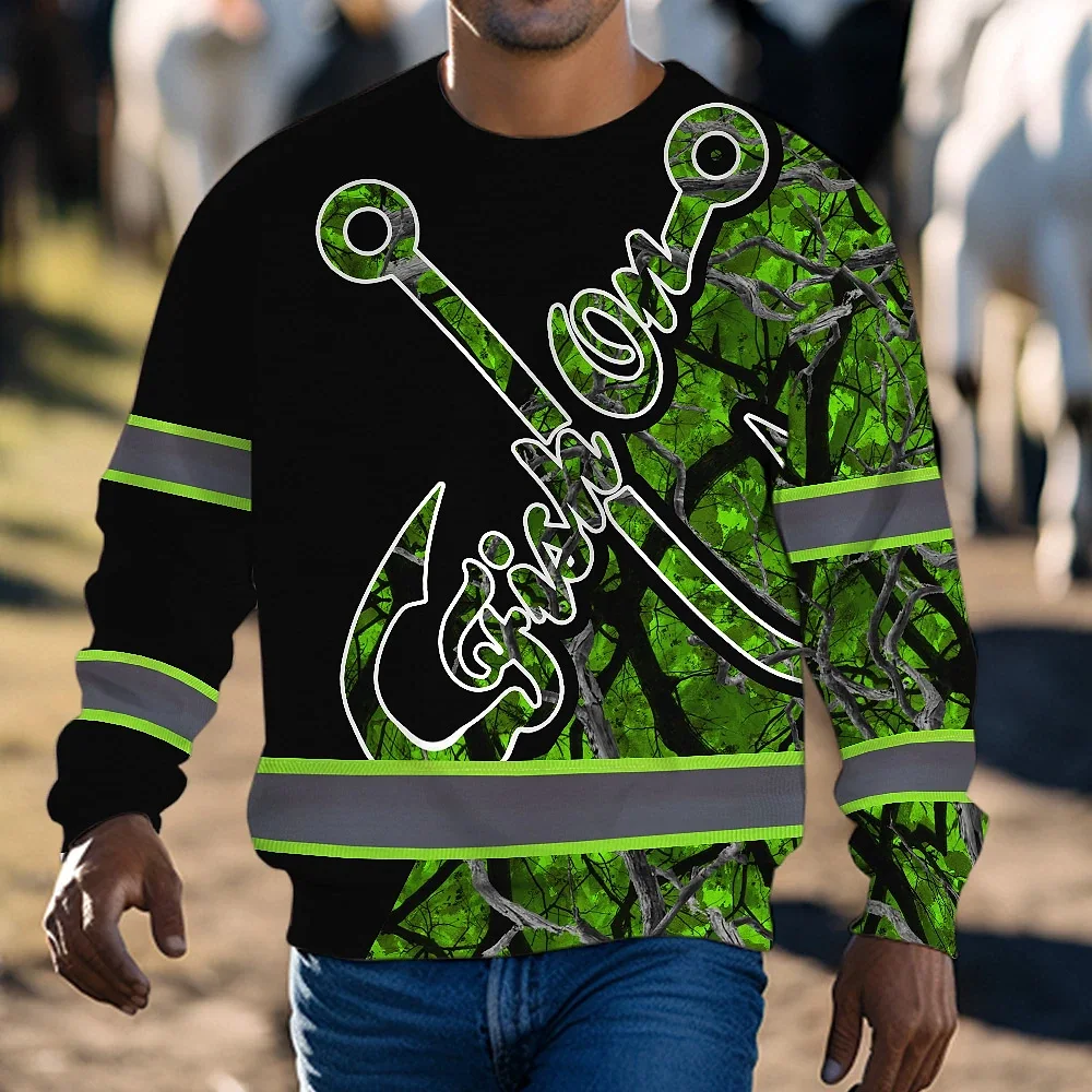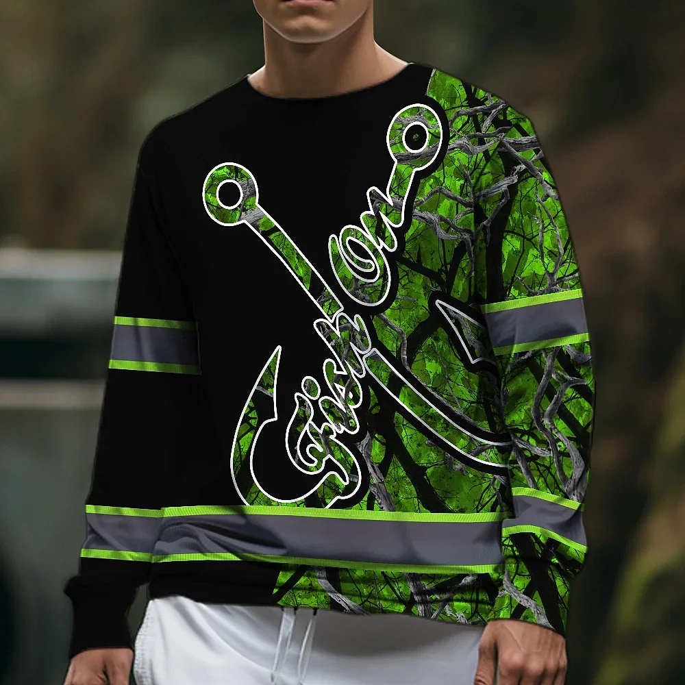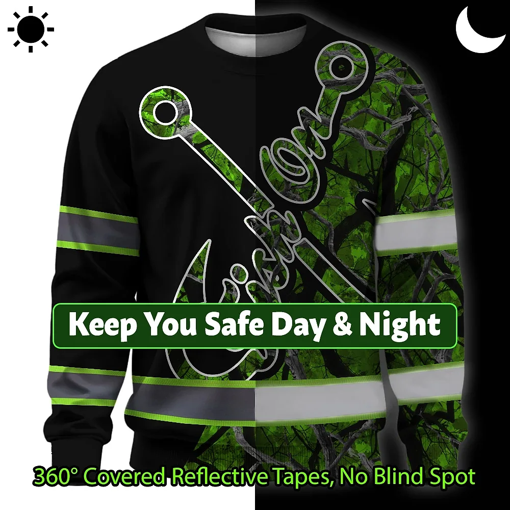 Hi Vis Long Sleeve Shirt Reflective Tapes Green Bass Fish Fishing Safety Workwear For Fishing Lovers Workers, Runners, Cyclists, Trucker, Operator, Patriotic