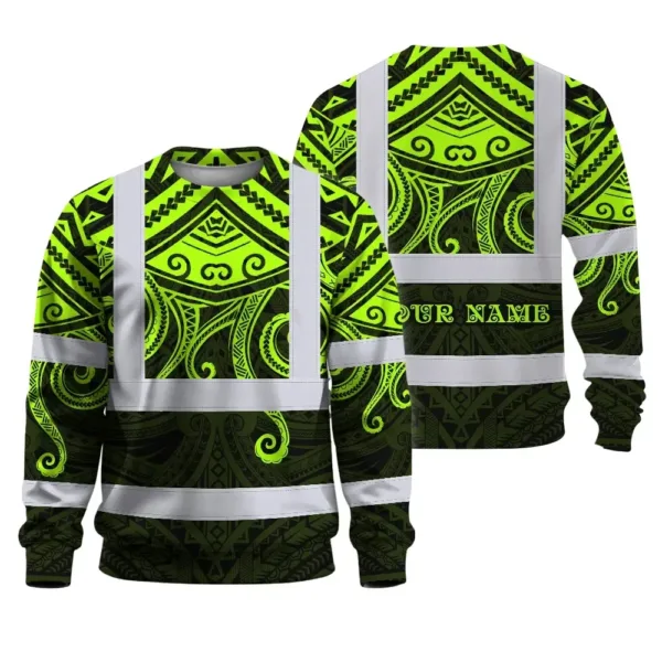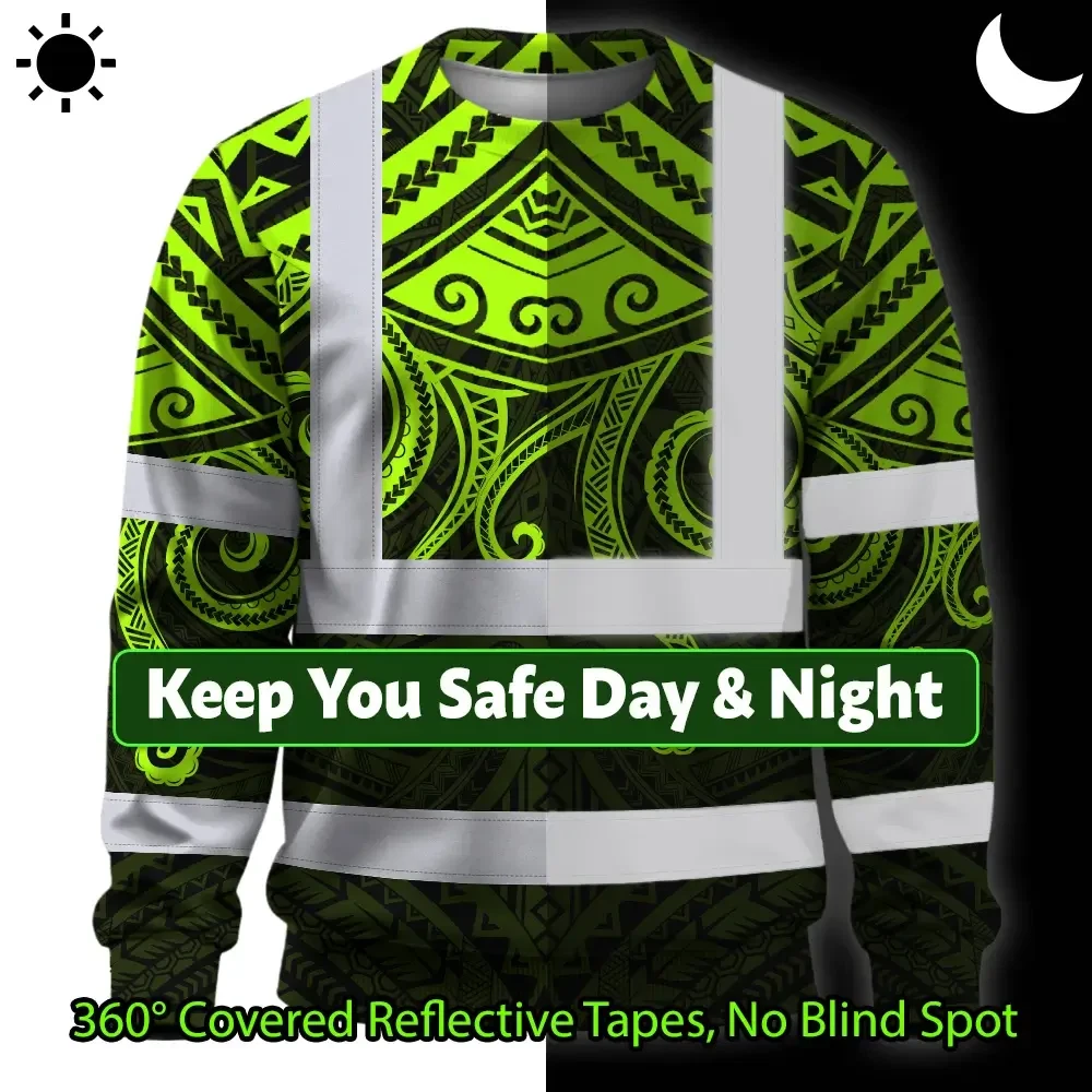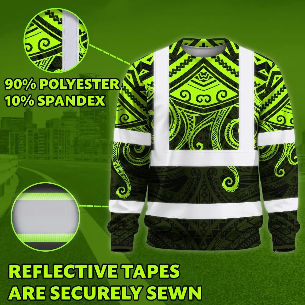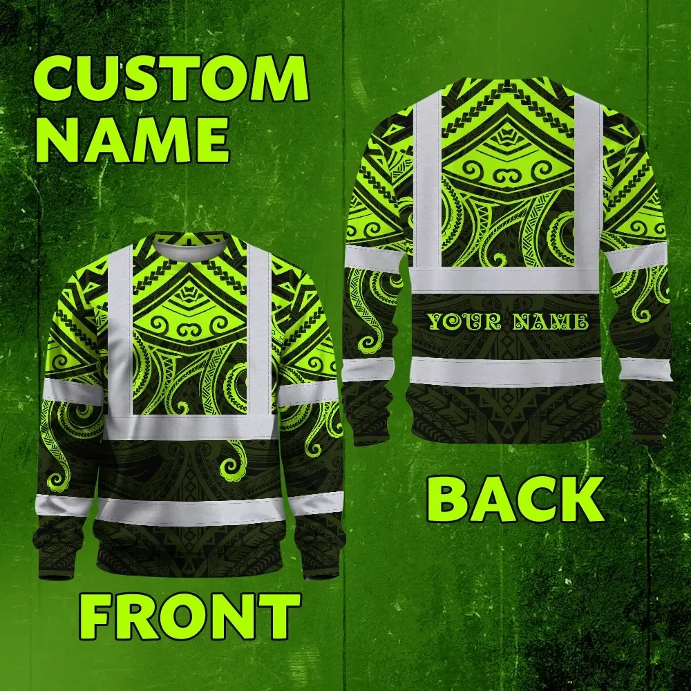 Hi Vis Long Sleeve Shirt Reflective Tapes Octopus Hawaiian Polynesian Tribal Custom Name