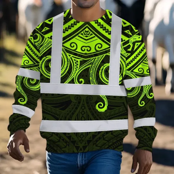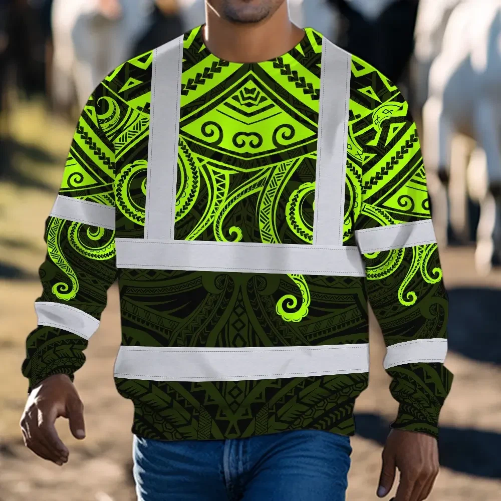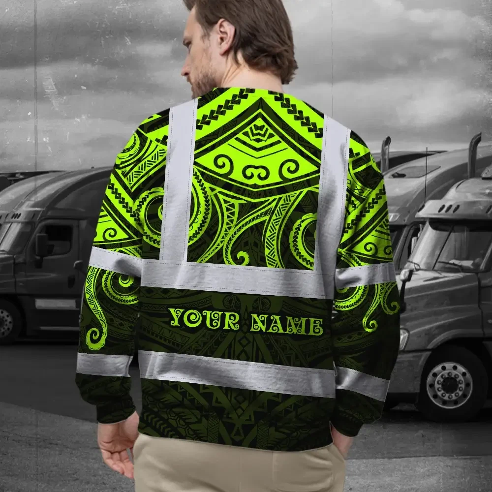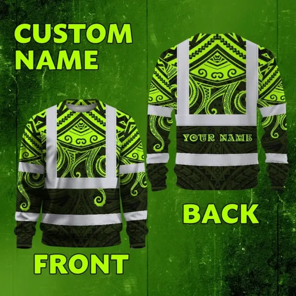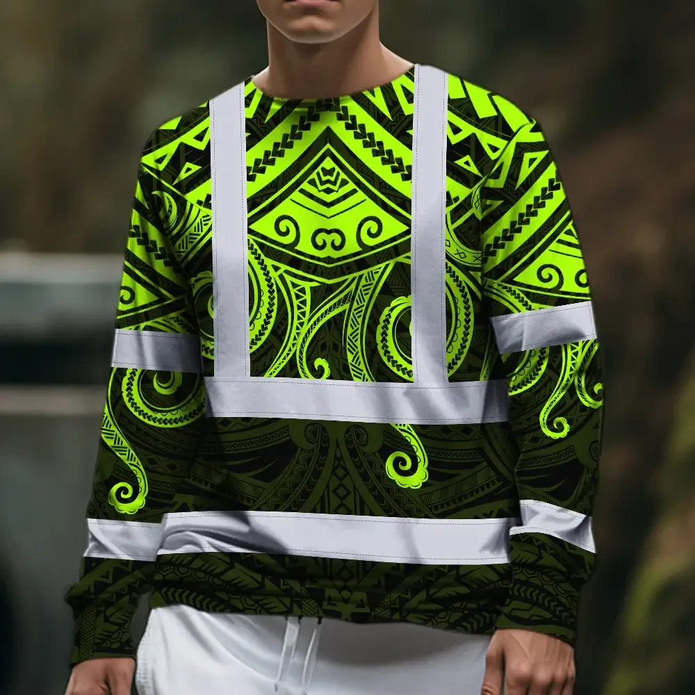 Hi Vis Long Sleeve Shirt Reflective Tapes Octopus Hawaiian Polynesian Tribal Custom Name