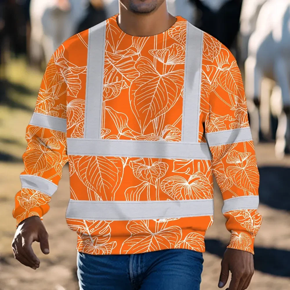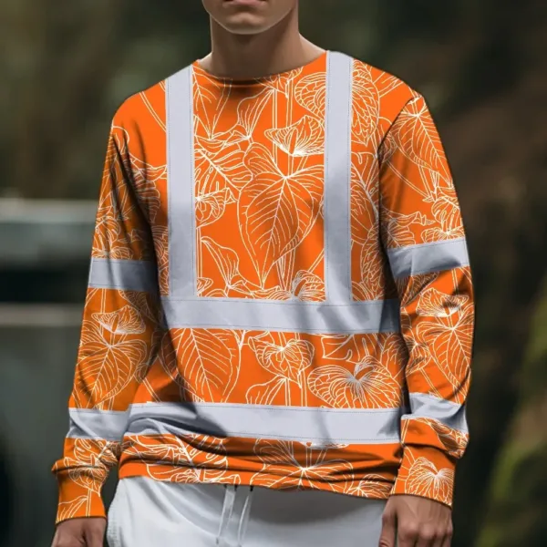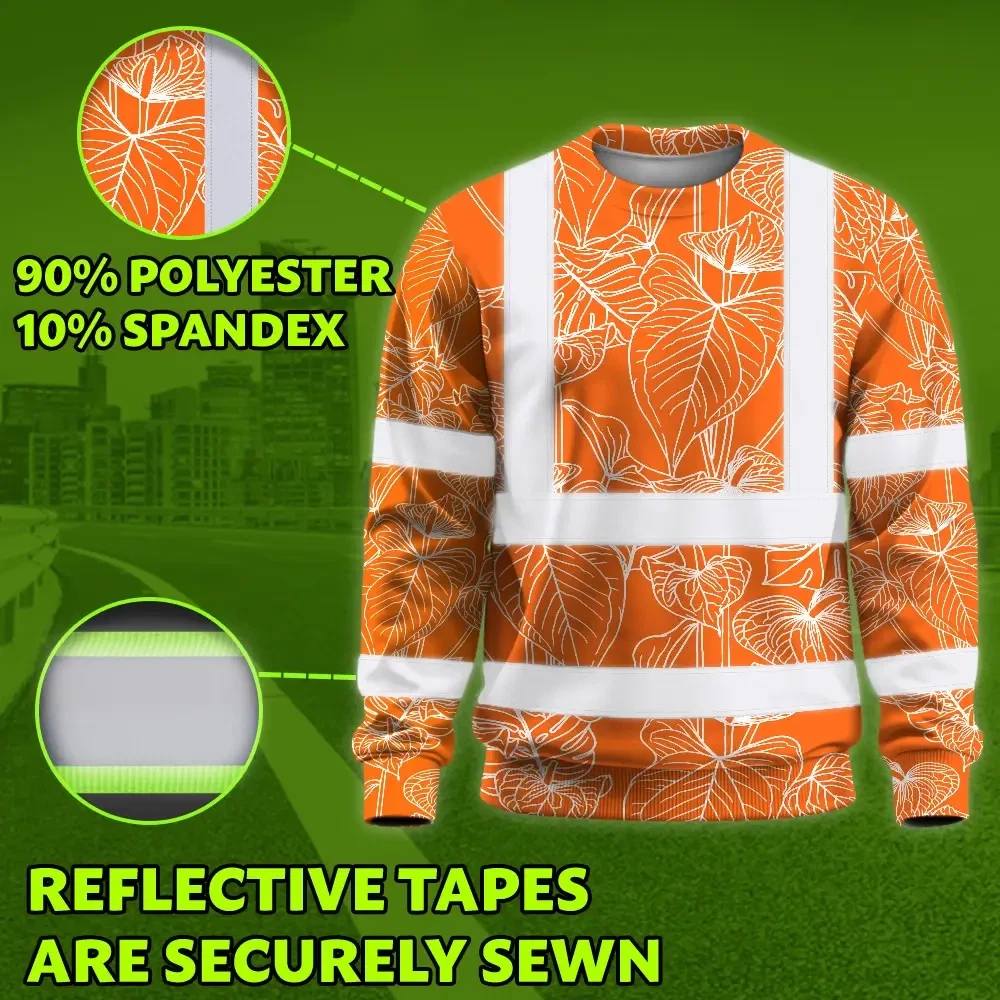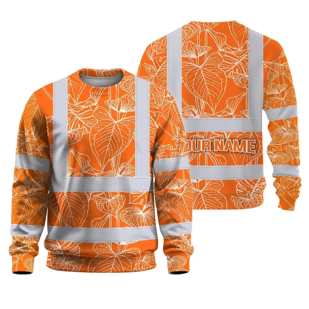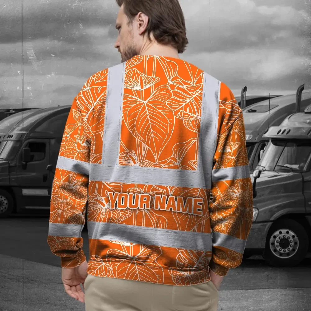 Hi Vis Long Sleeve Shirt Reflective Tapes Orange Neon Flowers Custom Name Safety Workwear For Workers, Truckers, Operators