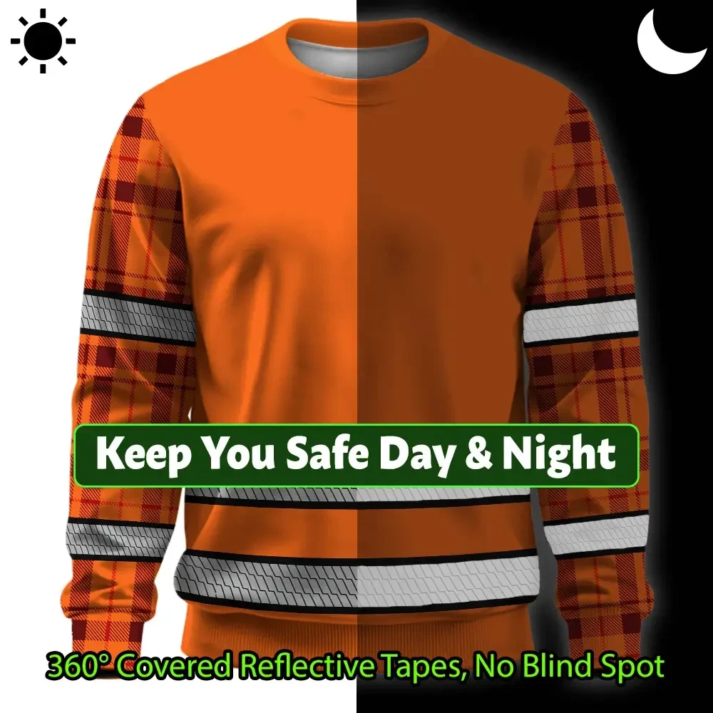 Hi Vis Long Sleeve Shirt Reflective Tapes Orange Neon Tartan Fabric Key Features
