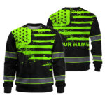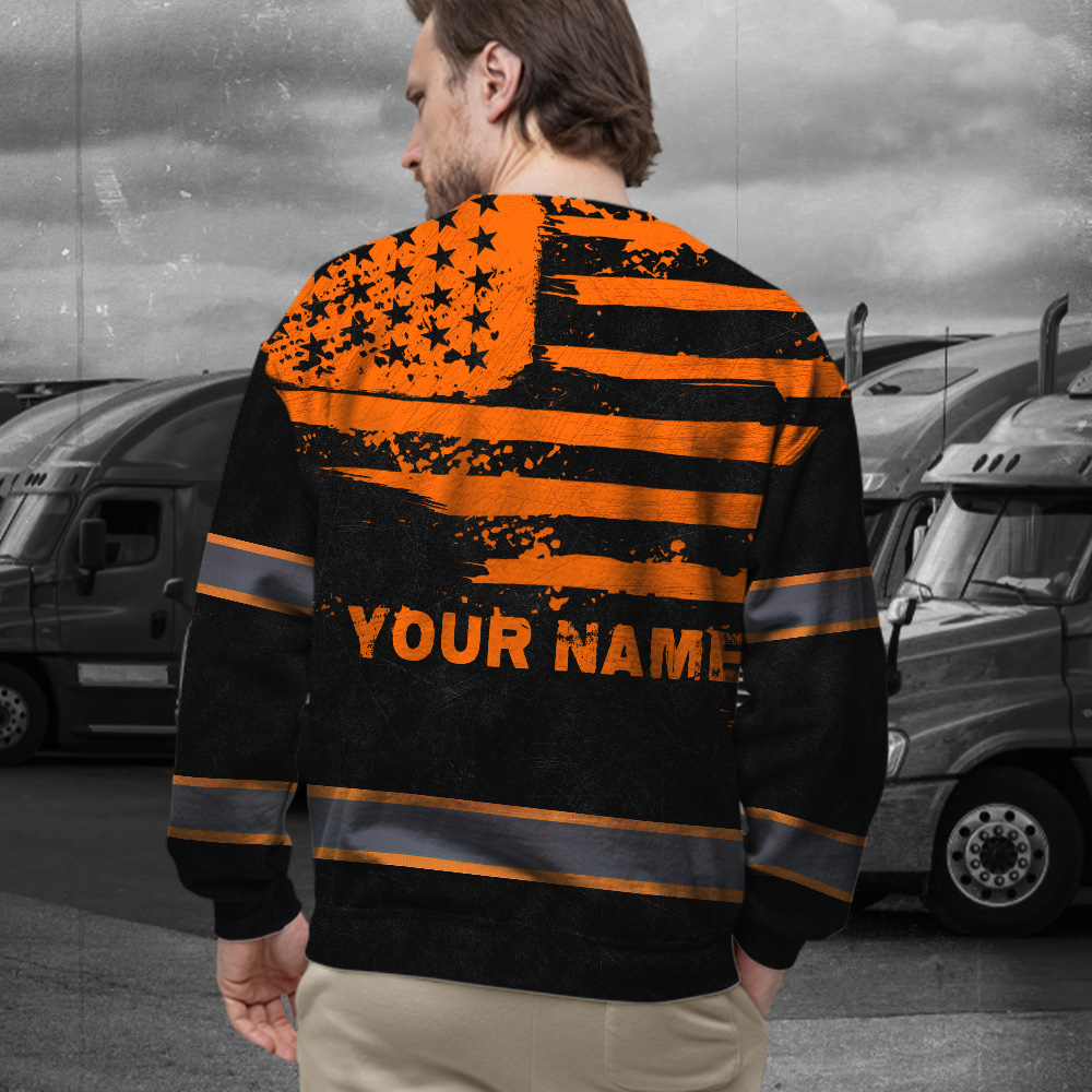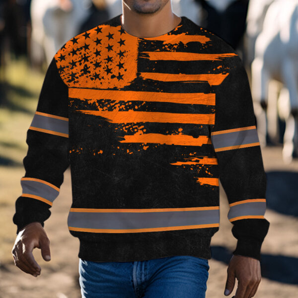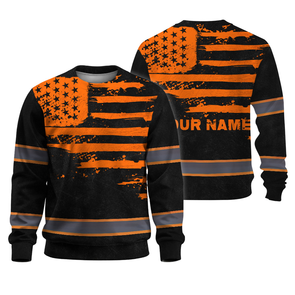 Hi Vis Long Sleeve Shirt Reflective Tapes Orange Neon US Flag Custom Name