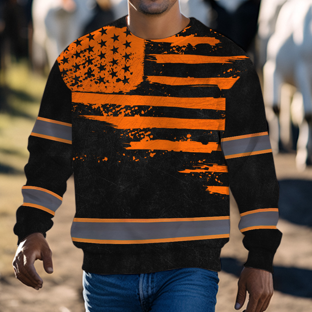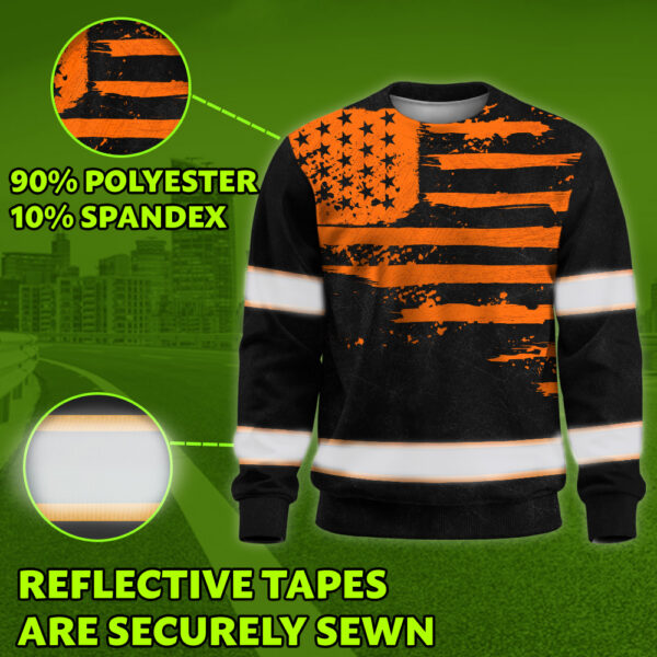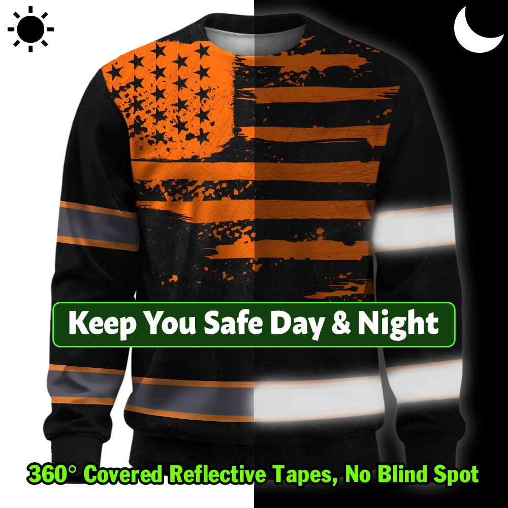 Hi Vis Long Sleeve Shirt Reflective Tapes Orange Neon US Flag Custom Name Key Features