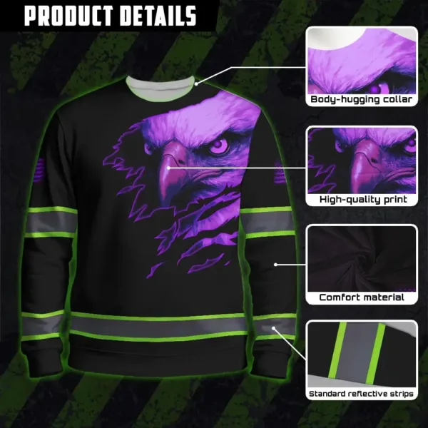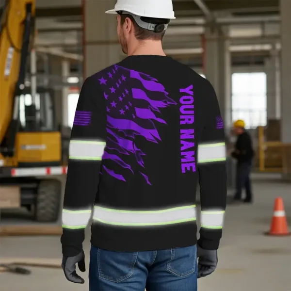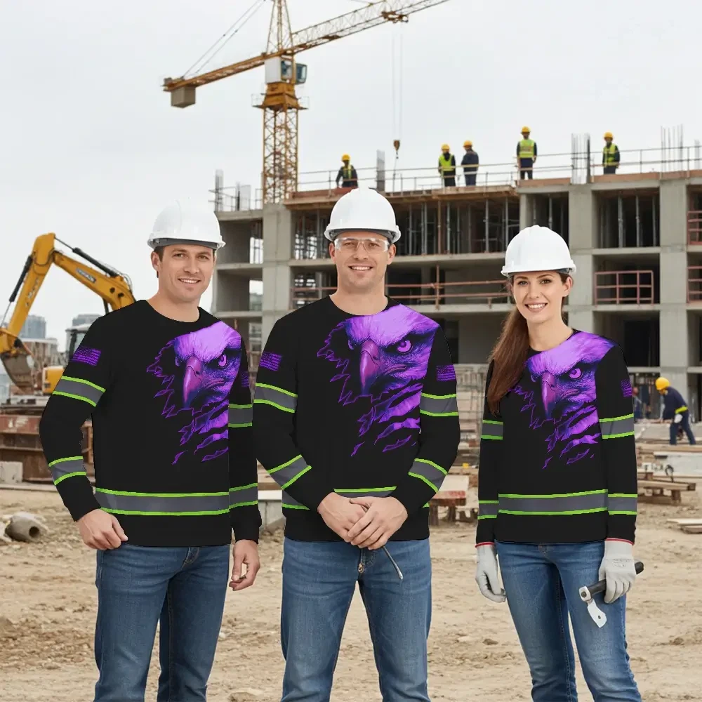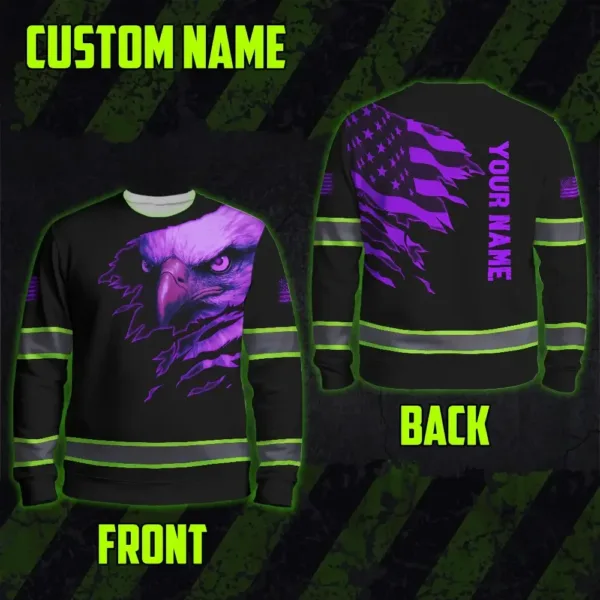 Hi Vis Long Sleeve Shirt Reflective Tapes Violet Neon Eagle US Flag Custom Name Key Features