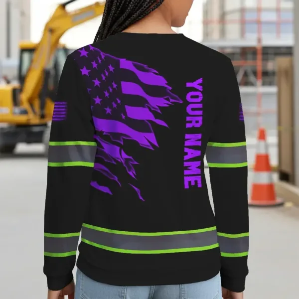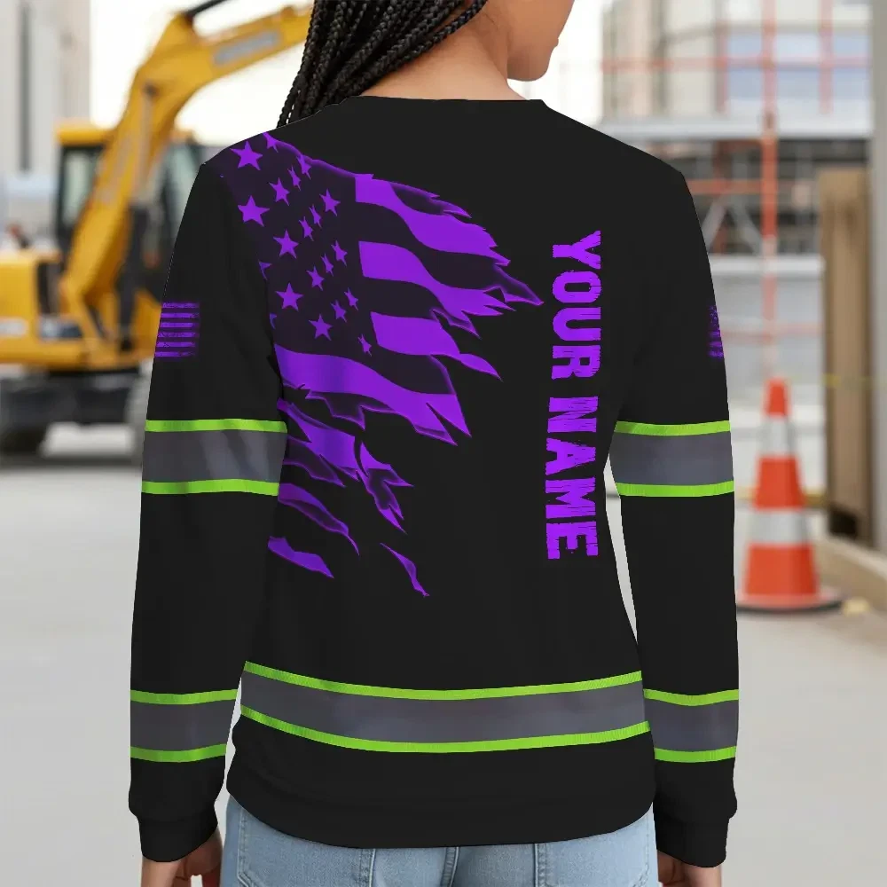 Hi Vis Long Sleeve Shirt Reflective Tapes Violet Neon Eagle US Flag Custom Name