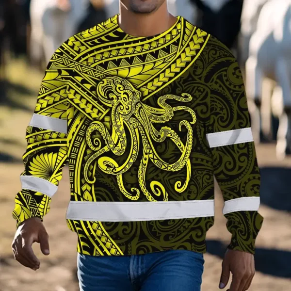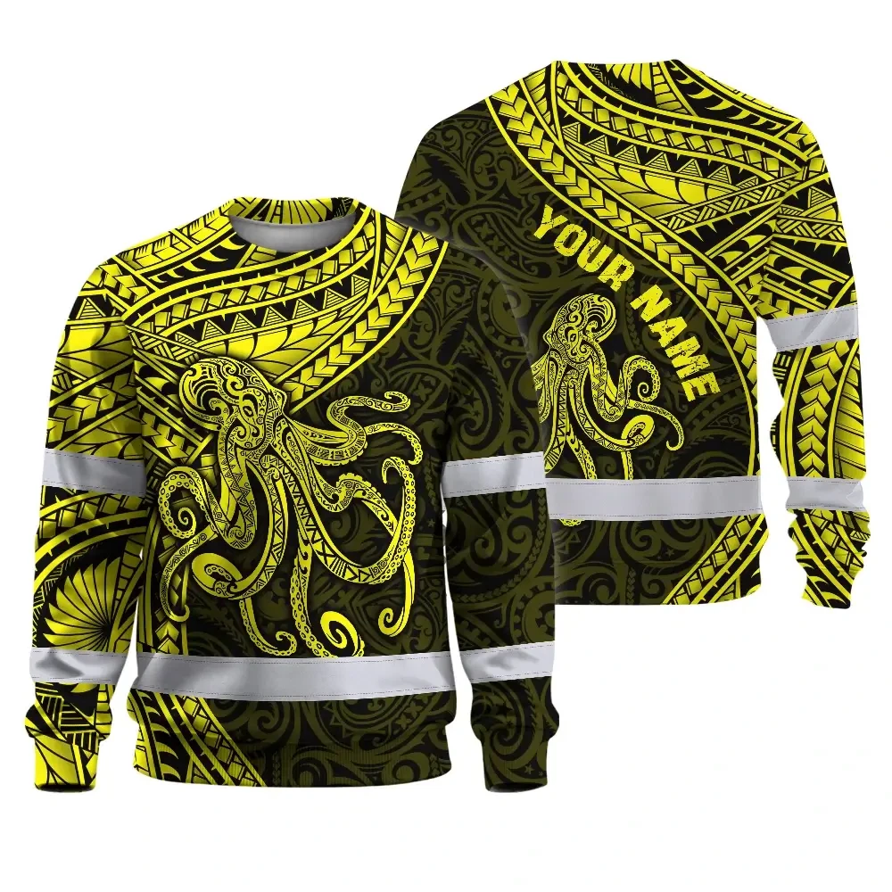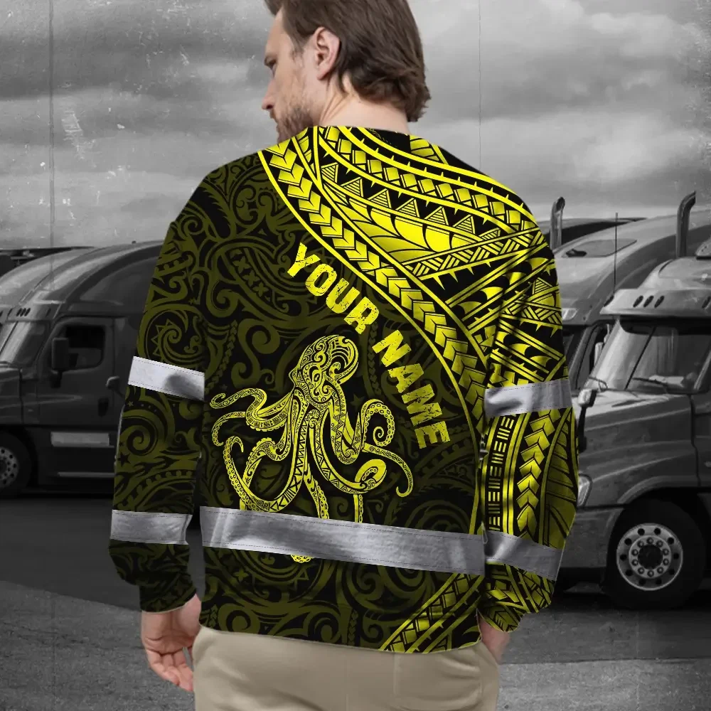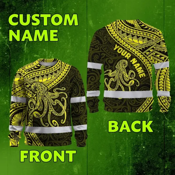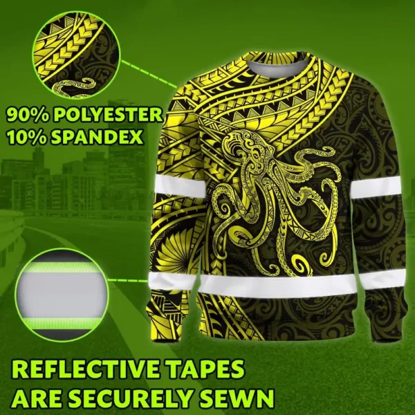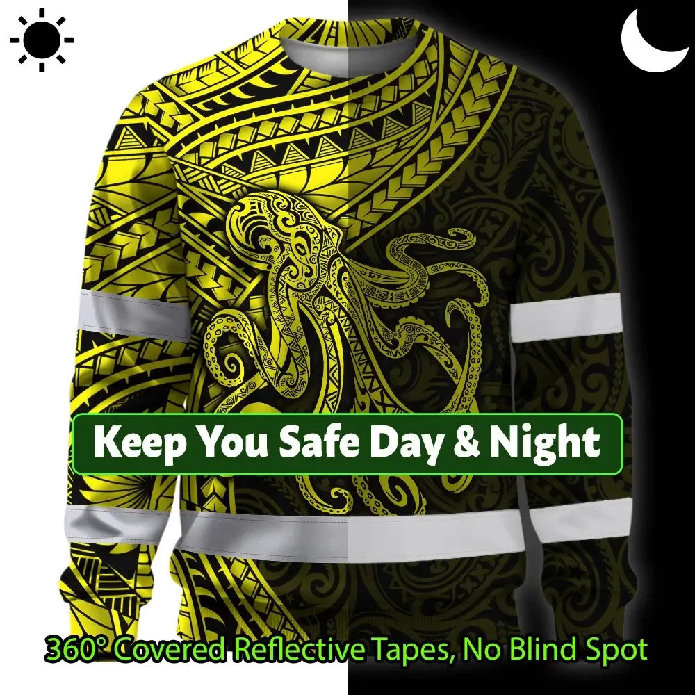 Hi Vis Long Sleeve Shirt Reflective Tapes Yellow Neon Hawaii Octopus Custom