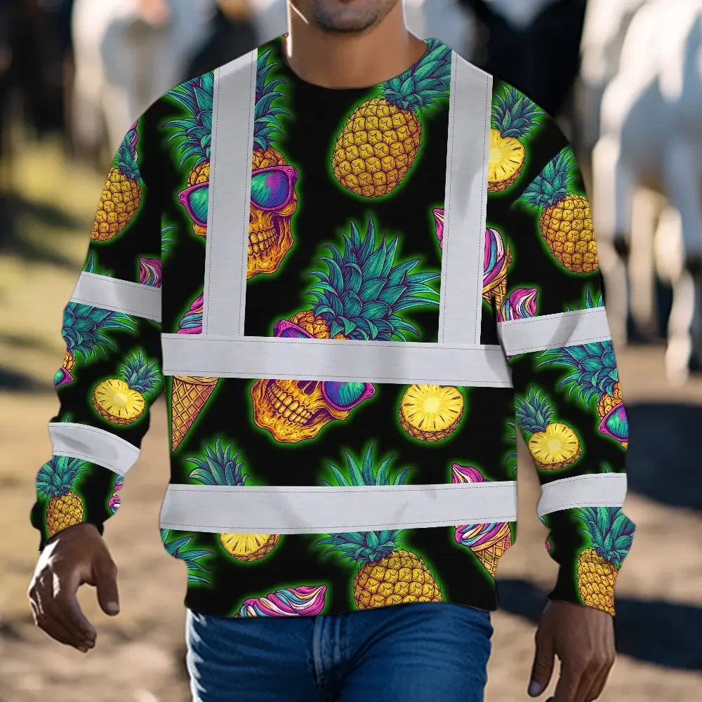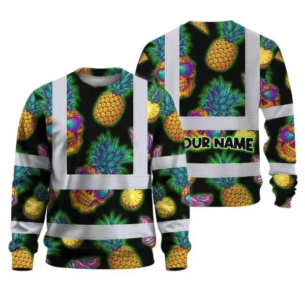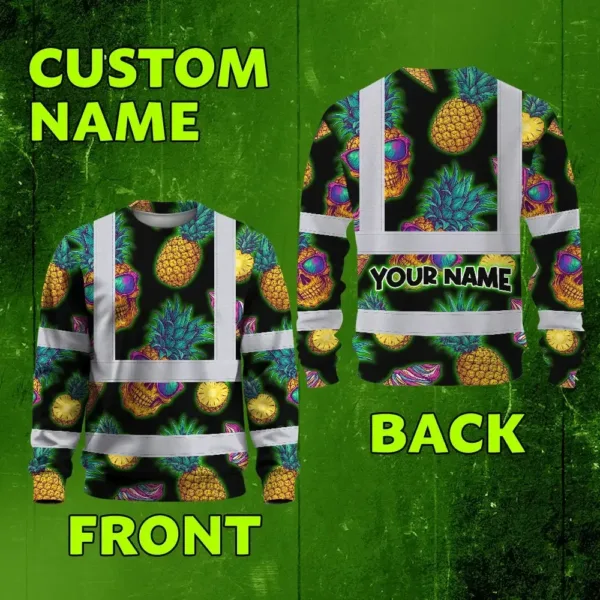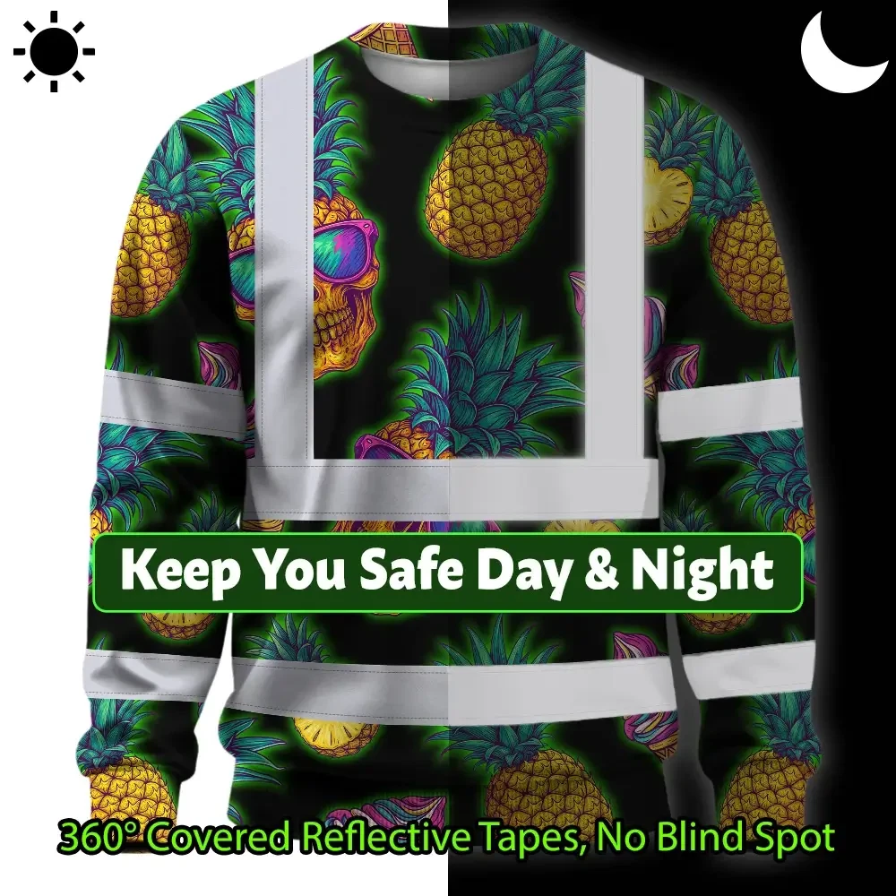 Hi Vis Long Sleeve Shirt Reflective Tapes Yellow Neon Skull Custom Name Safety Workwear For Workers, Truckers, Operators