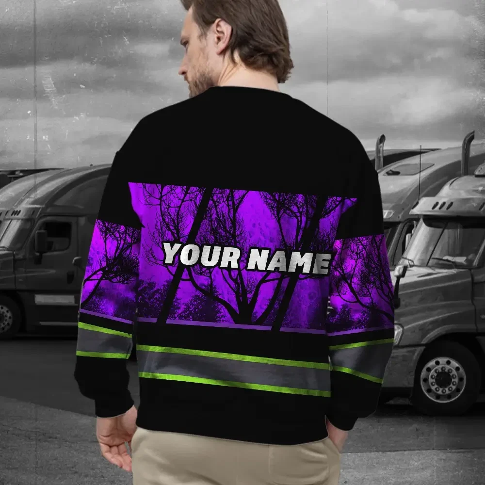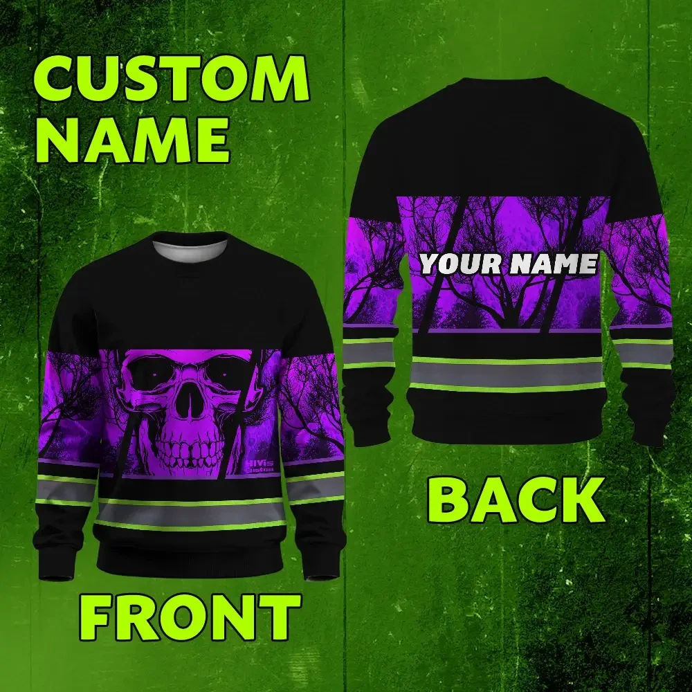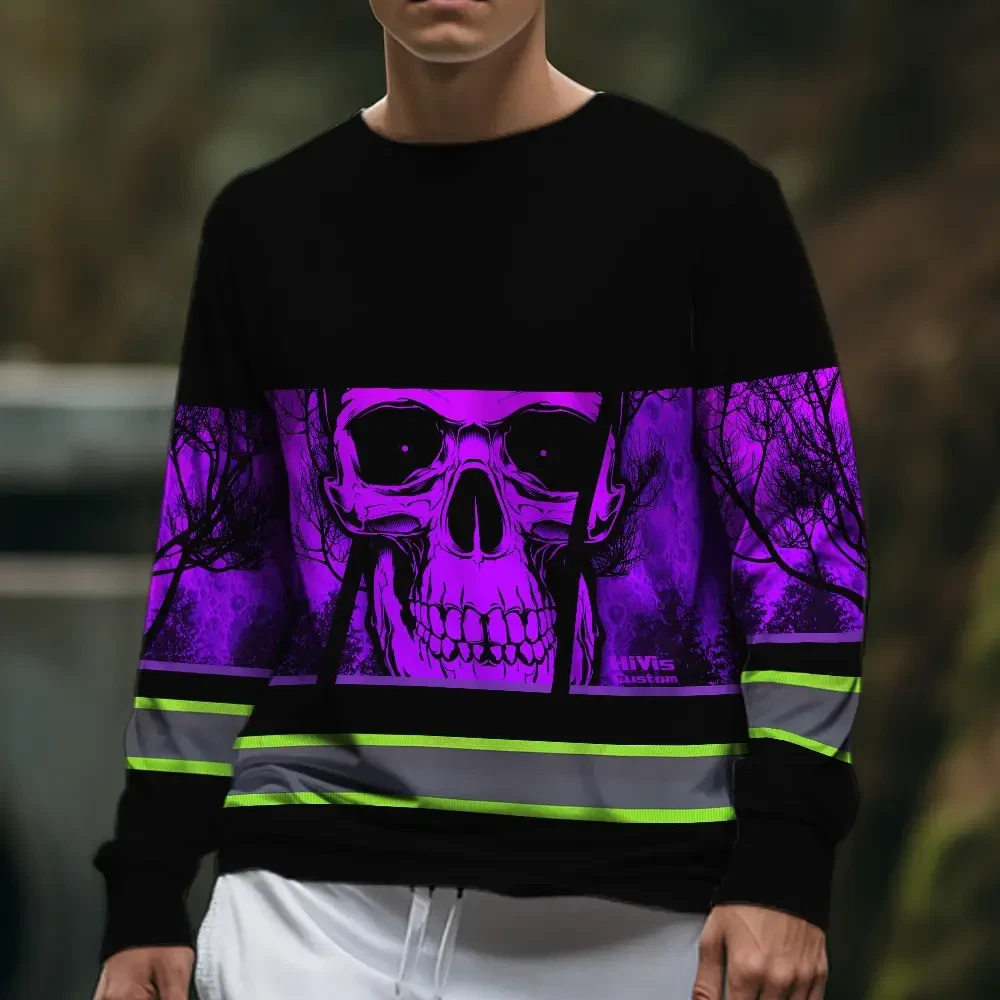 Hi Vis Long Sleeve Shirt Reflective Violet Skull USA Flag Custom Name