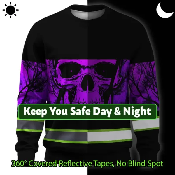 Hi Vis Long Sleeve Shirt Reflective Violet Skull USA Flag Custom NameKey Features