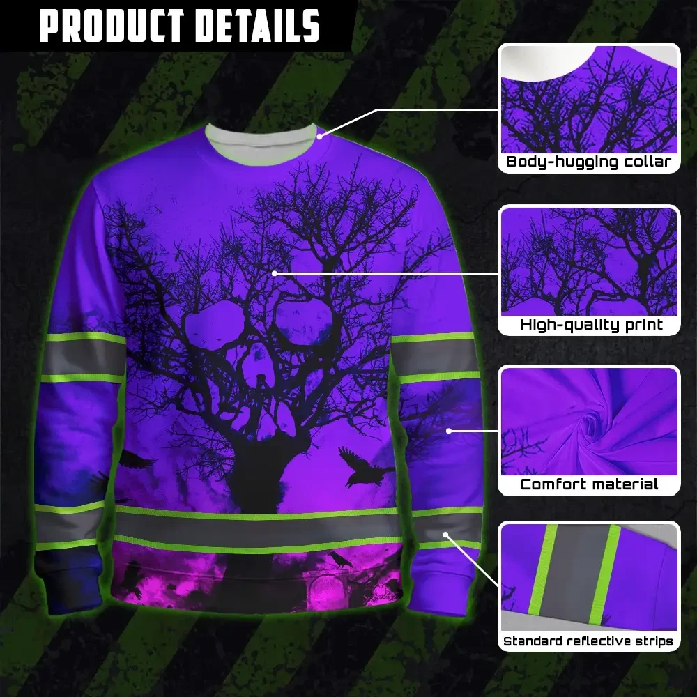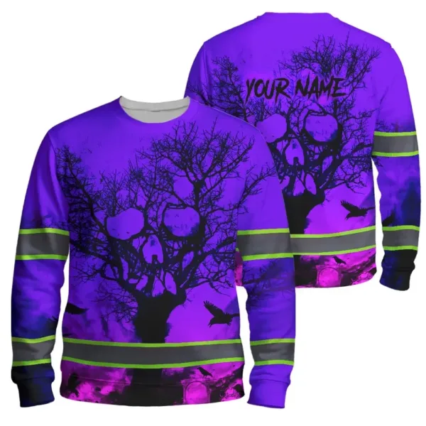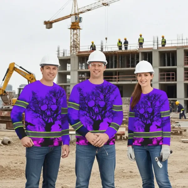 Be the first to review “Hi Vis Long Sleeve Shirt With Violet Neon Forest Skull And Custom Name For Safety Workwear”