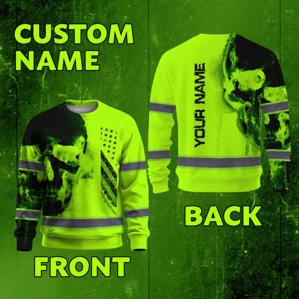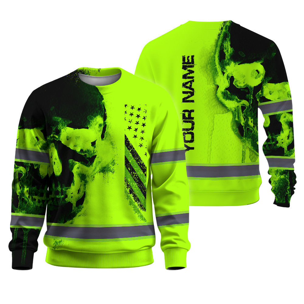 Hi Vis Long Sleeve Shirts Reflective Black Skull Custom Name Safety Workwear For Skull Lovers