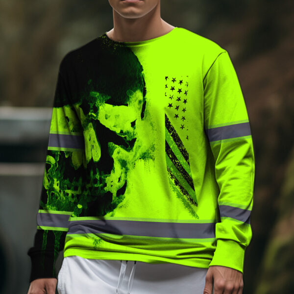 Hi Vis Long Sleeve Shirts Reflective Black Skull Custom Name Safety Workwear For Skull Lovers Key Features