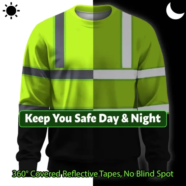 Hi Vis Long Sleeve Shirts Reflective Green Custom Name Safety Workwear Key Features