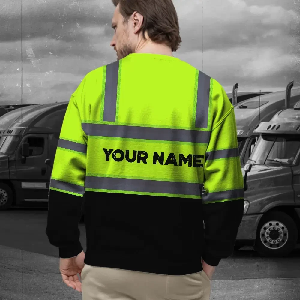 Hi Vis Long Sleeve Shirts Reflective Green Custom Name Safety Workwear