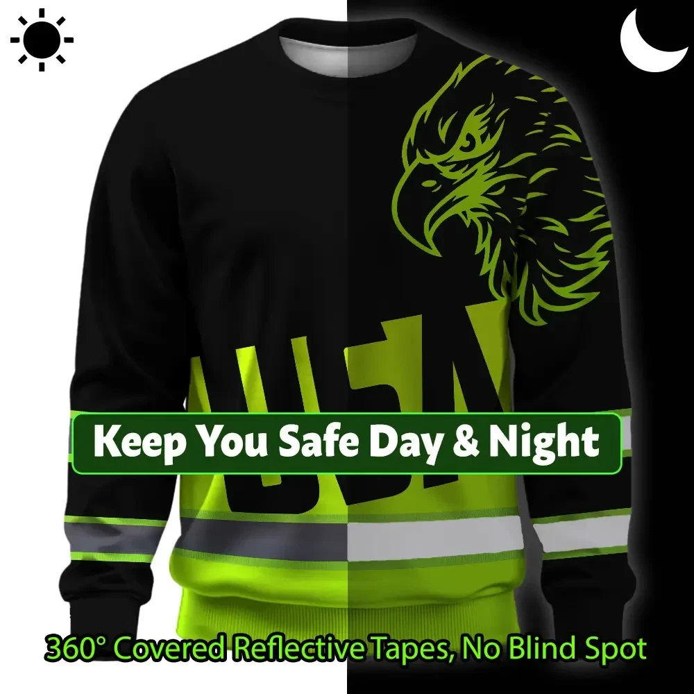 Hi Vis Long Sleeve Shirts Reflective Green USA Eagle Safety For Motorcycle Bicycle Key Features