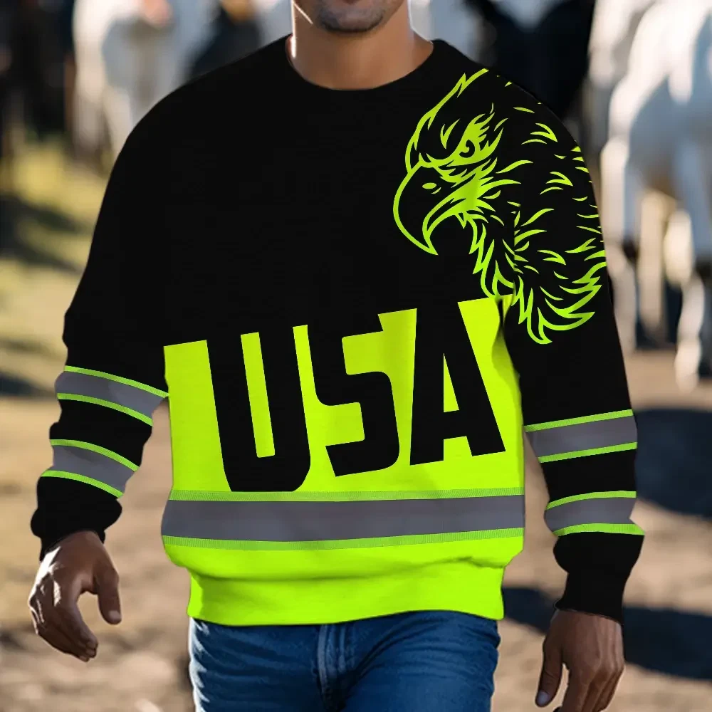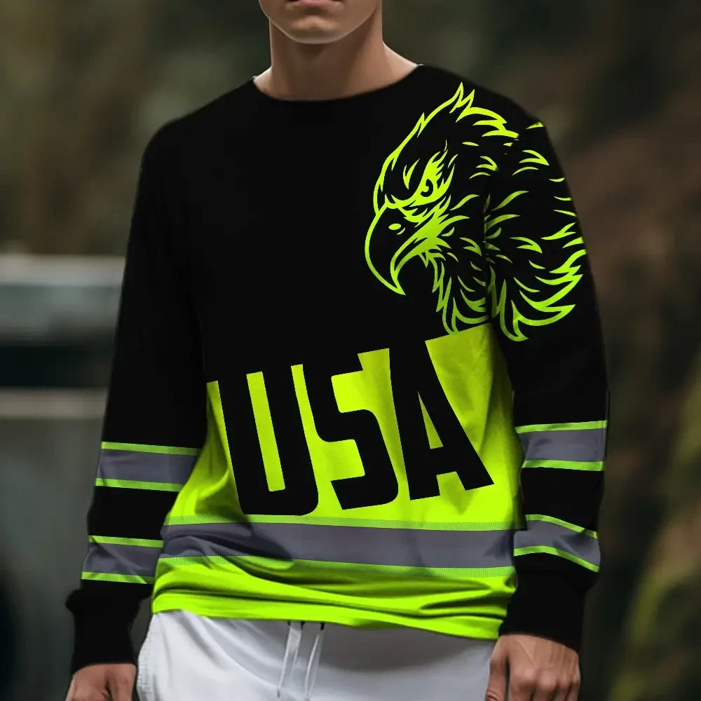 Hi Vis Long Sleeve Shirts Reflective Green USA Eagle Safety For Motorcycle Bicycle