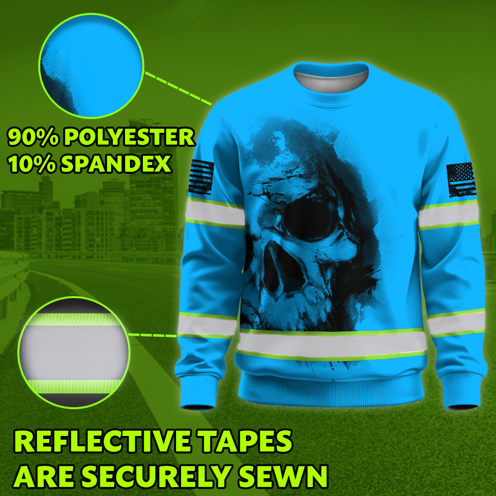 Hi Vis Long Sleeve Shirts Reflective Tapes Blue Neon Skull Custom Name Safety Workwear Key Features