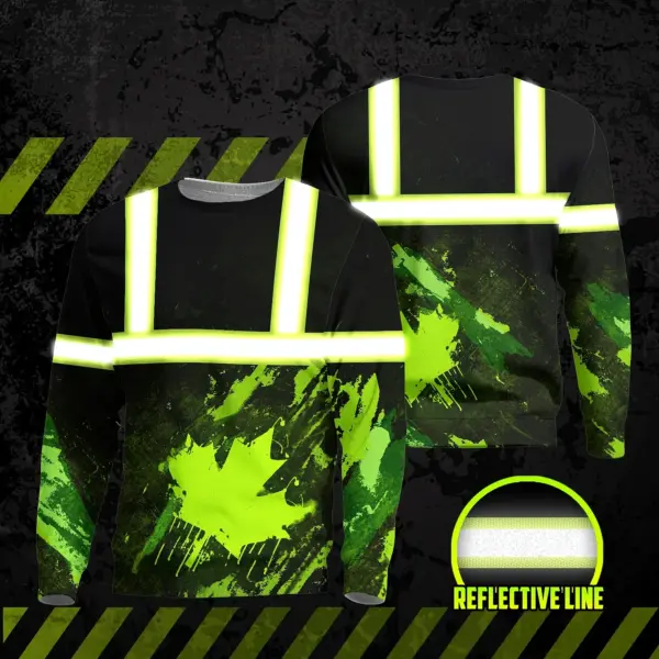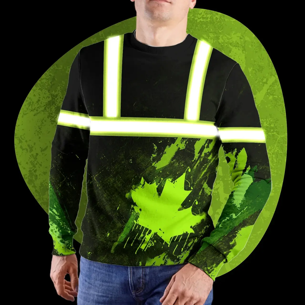 Hi Vis Long Sleeves Shirt Reflective Canada Flag Custom Name Safety Workwear For Worker, Operator, Patriotic