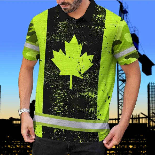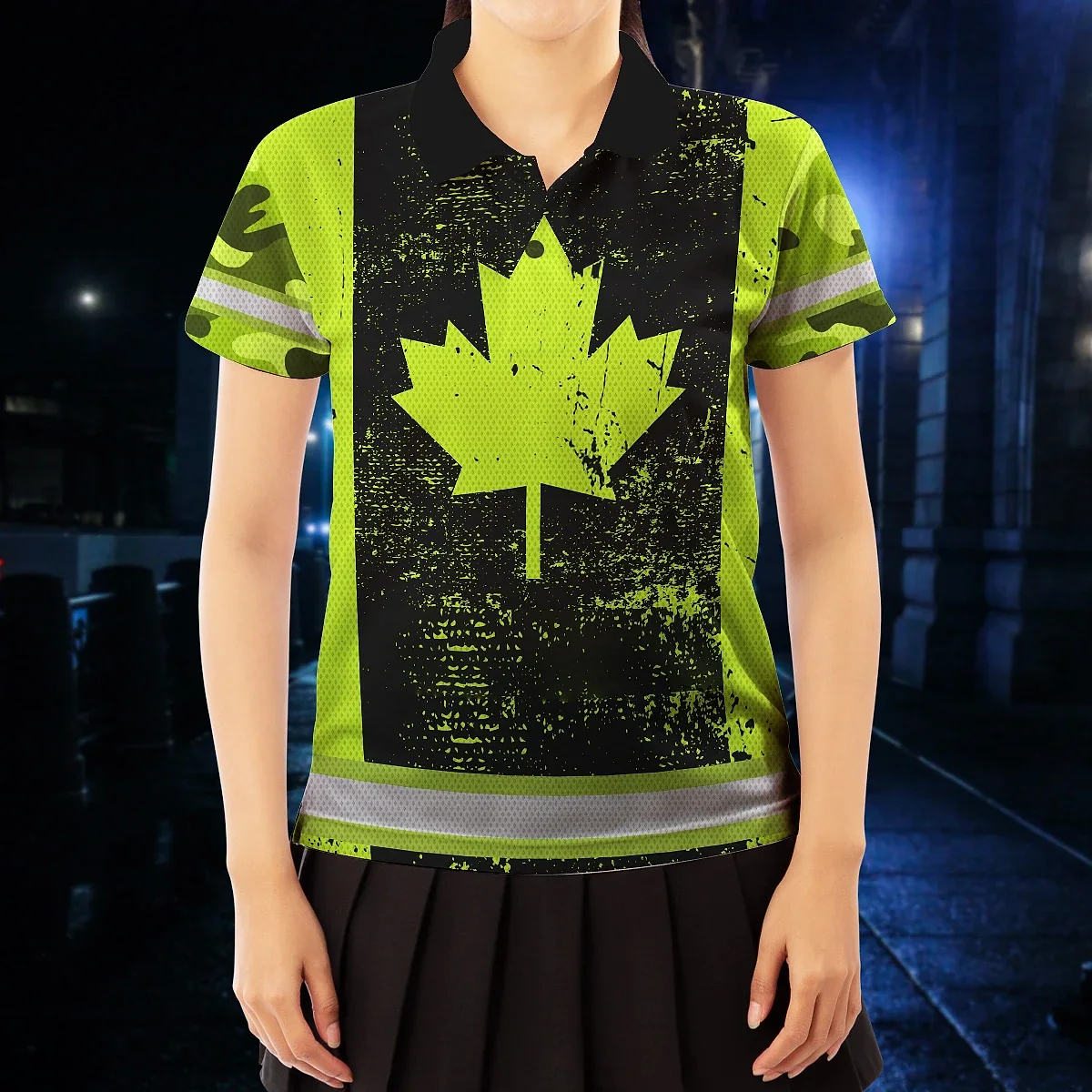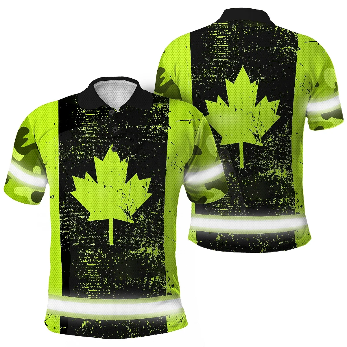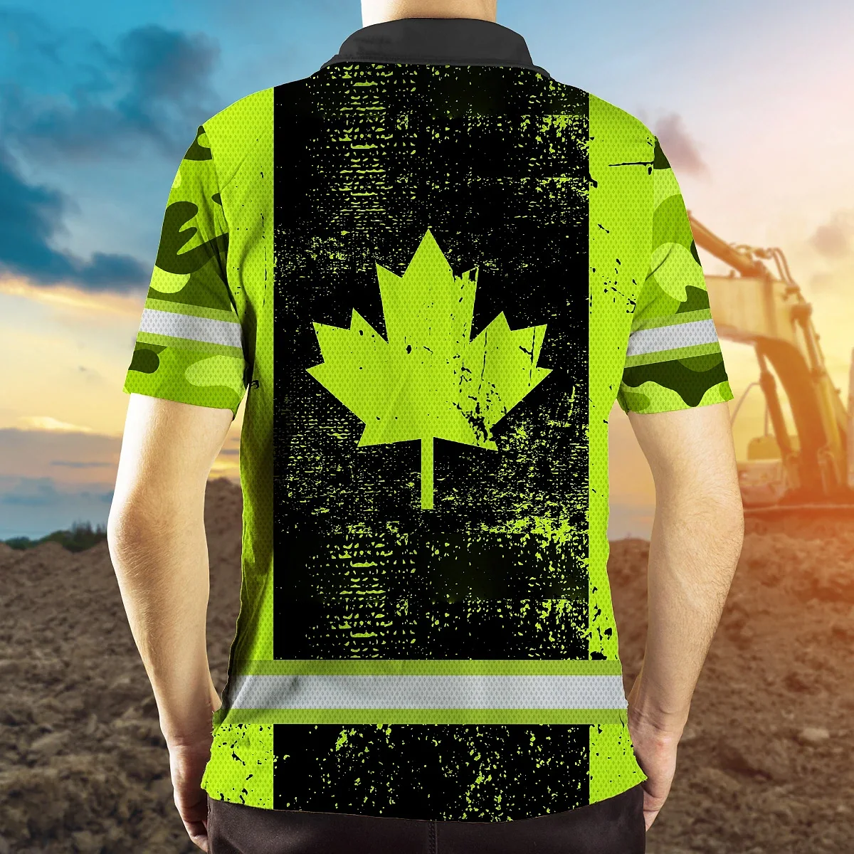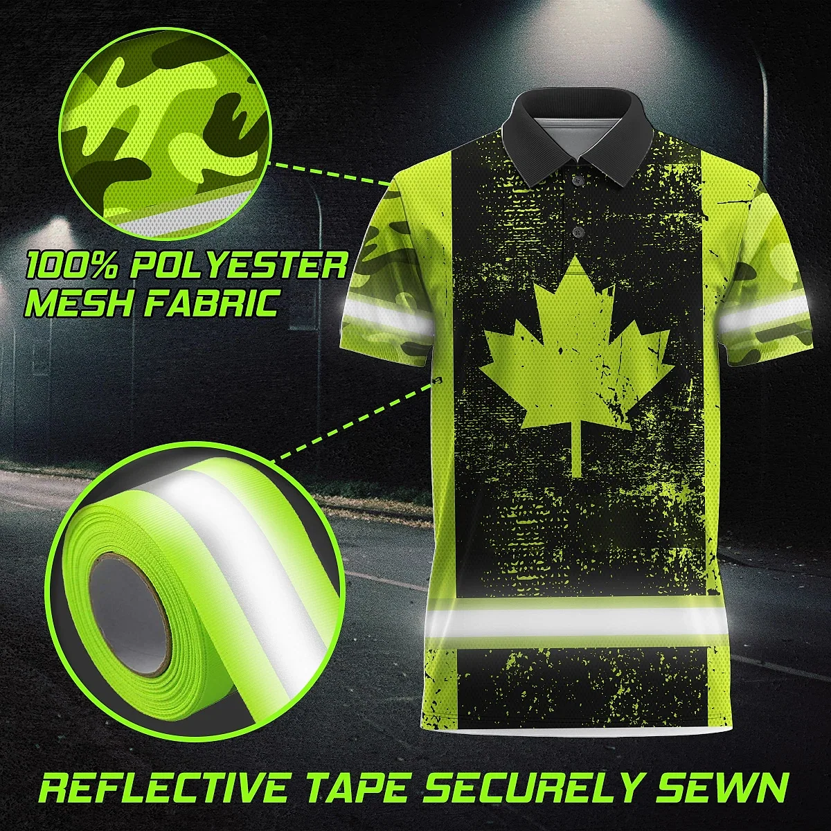 Hi Vis Polo Shirt Reflective Camo Canada Flag Safety Workwear For Worker, Operator, Patriotic