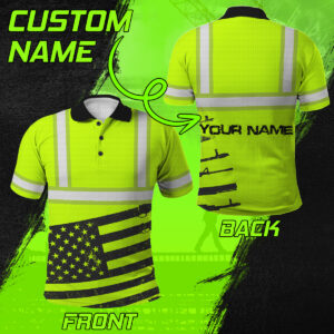 Select options This product has multiple variants. The options may be chosen on the product pageHi Vis Patriotic Products, Hi Vis Polo Patriotic Collection, Hi Vis Polo Shirts, Hi Vis Polo Shirts New Collection, Reflective Safety Polo ShirtsSafety Workwear Hi Vis Polo – Custom Name Green Neon USA Flag Gun Work Shirt