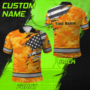 Select options This product has multiple variants. The options may be chosen on the product pageHi Vis Polo Shirt Reflective Tapes Scratch Orange Camo Neon US Flag Custom Name Safety Workwear