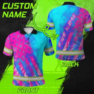 Select options This product has multiple variants. The options may be chosen on the product pageHi Vis Patriotic Products, Hi Vis Polo Patriotic Collection, Hi Vis Polo Shirts, Reflective Safety Polo ShirtsHi Vis Polo Shirts Reflective Tapes Pink Neon And Blue US Flag Custom Name Safety Workwear