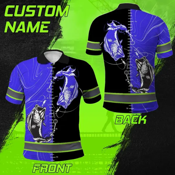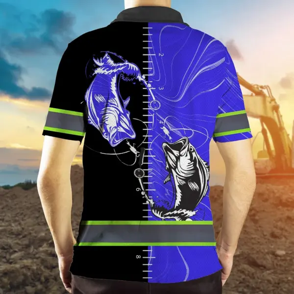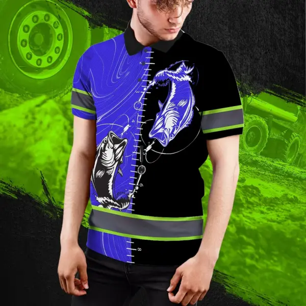 Hi Vis Polo Shirt Reflective Fishing Blue Neon Safety Workwear For Fishing Lovers Workers, Runners, Cyclists, Trucker, Operator, Patriotic