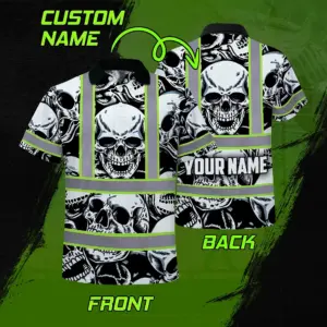 Select options This product has multiple variants. The options may be chosen on the product pageHi Vis Polo Shirt Reflective Tapes Grey Black Skull Custom Name Safety Workwear For Workers, Truckers, Operators