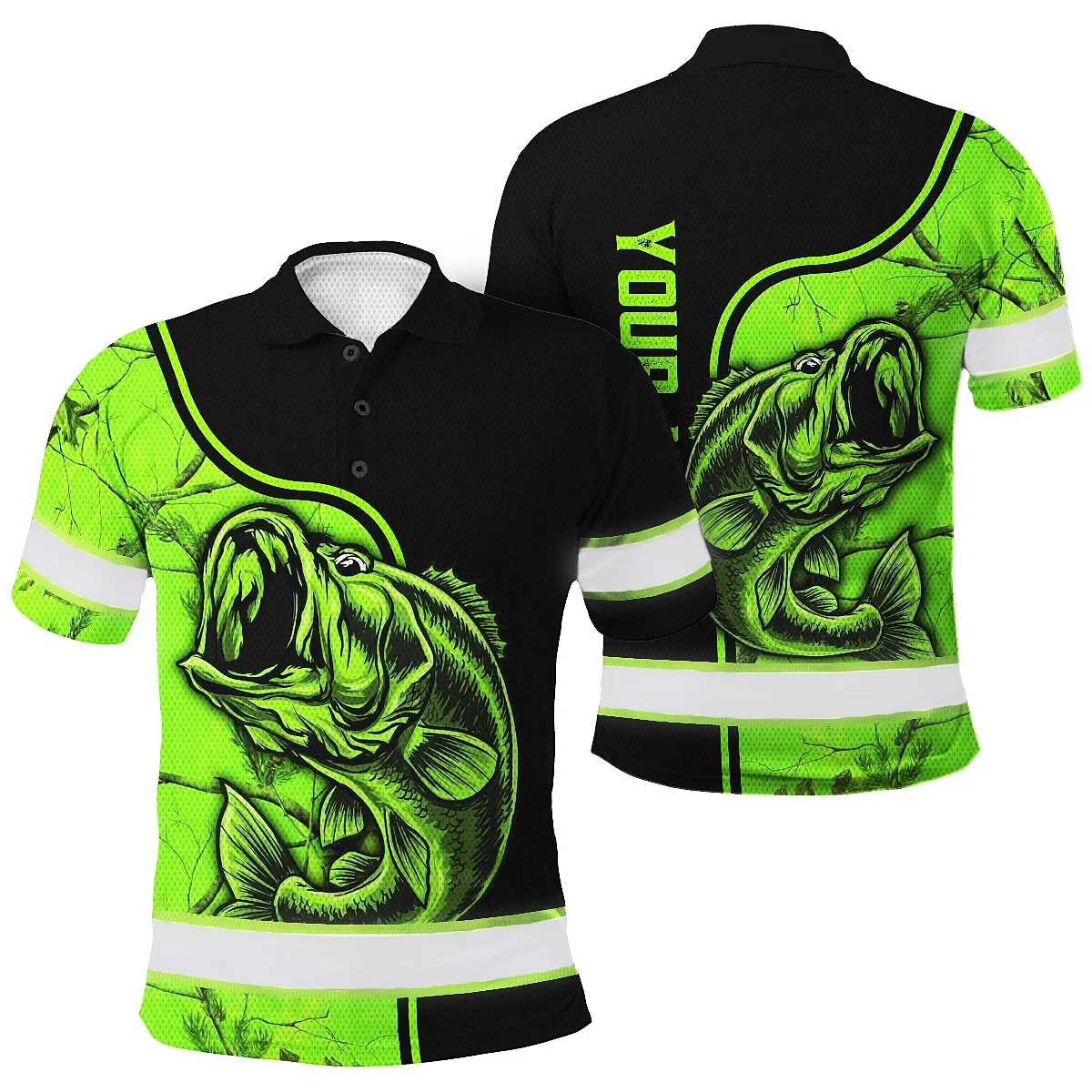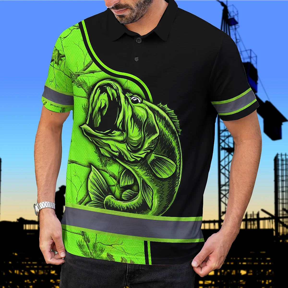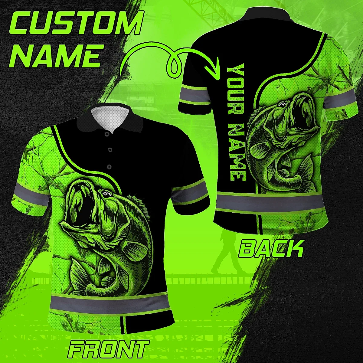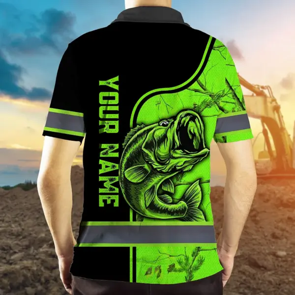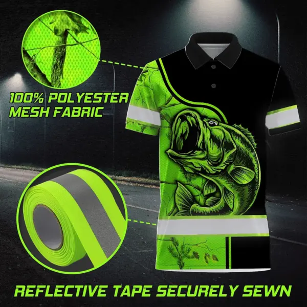 Hi Vis Polo Shirt Reflective Fishing Green Neon Custom Name Safety Workwear For Fishing Lovers Workers, Runners, Cyclists, Trucker, Operator, Patriotic