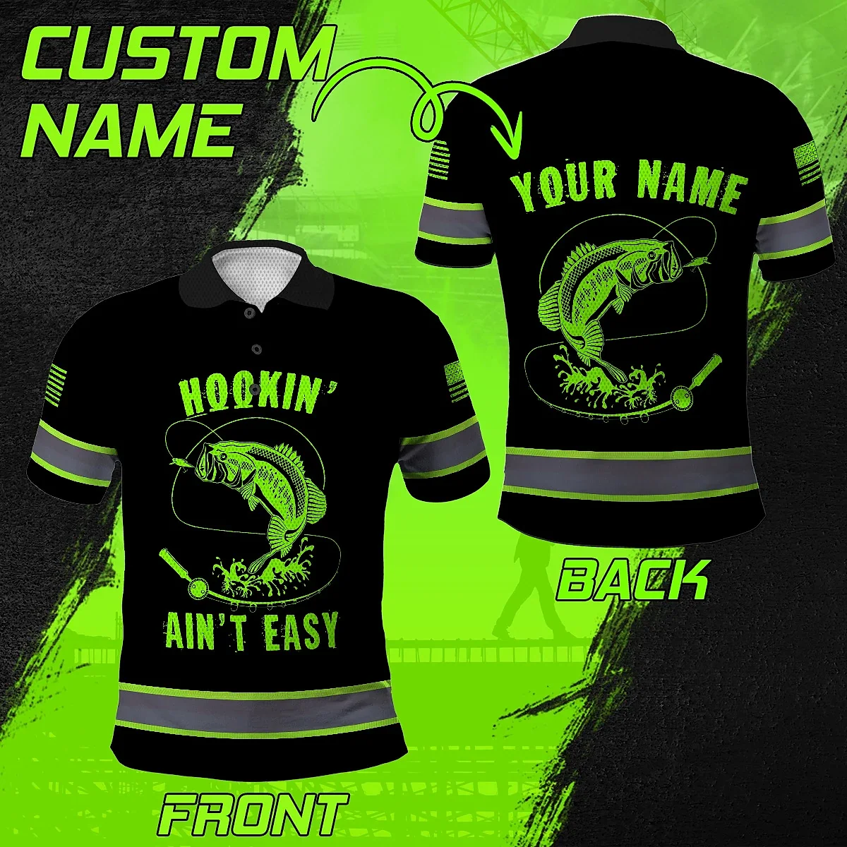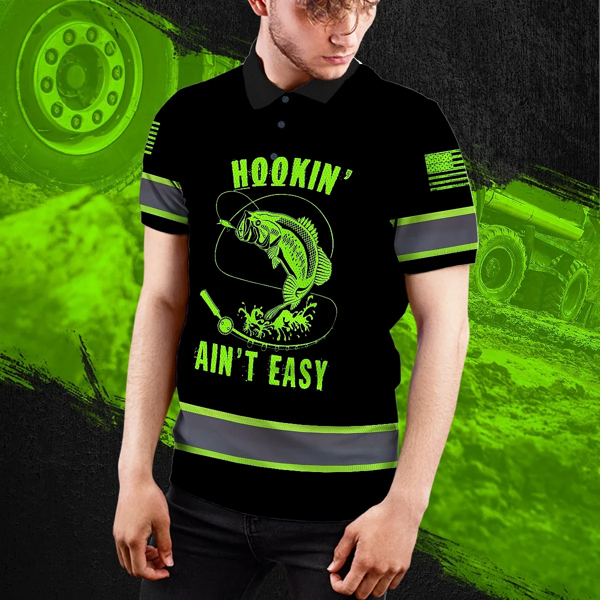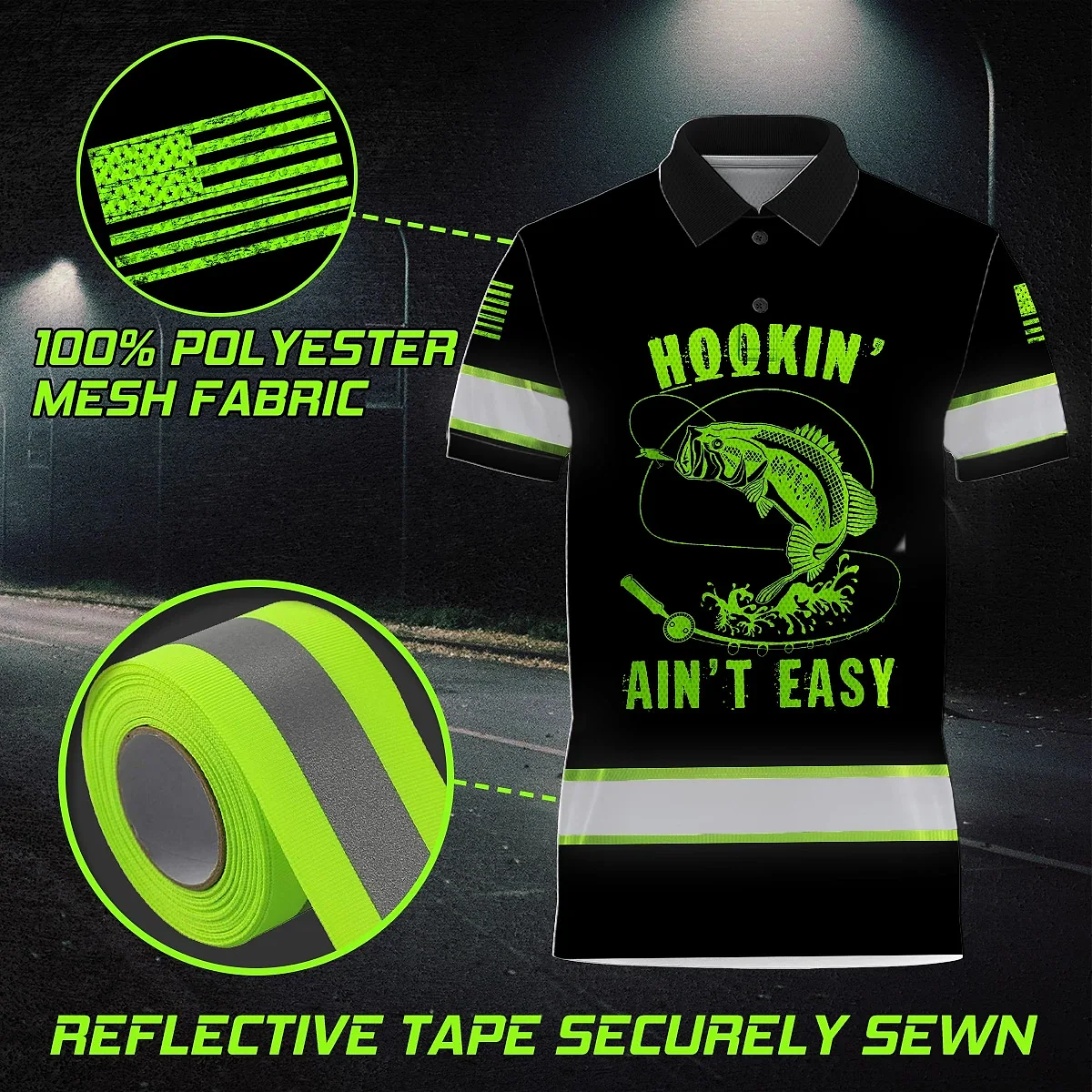 Hi Vis Polo Shirt Reflective Fishing Green Neon Safety Workwear For Fishing Lovers Workers, Runners, Cyclists, Trucker, Operator, Patriotic
