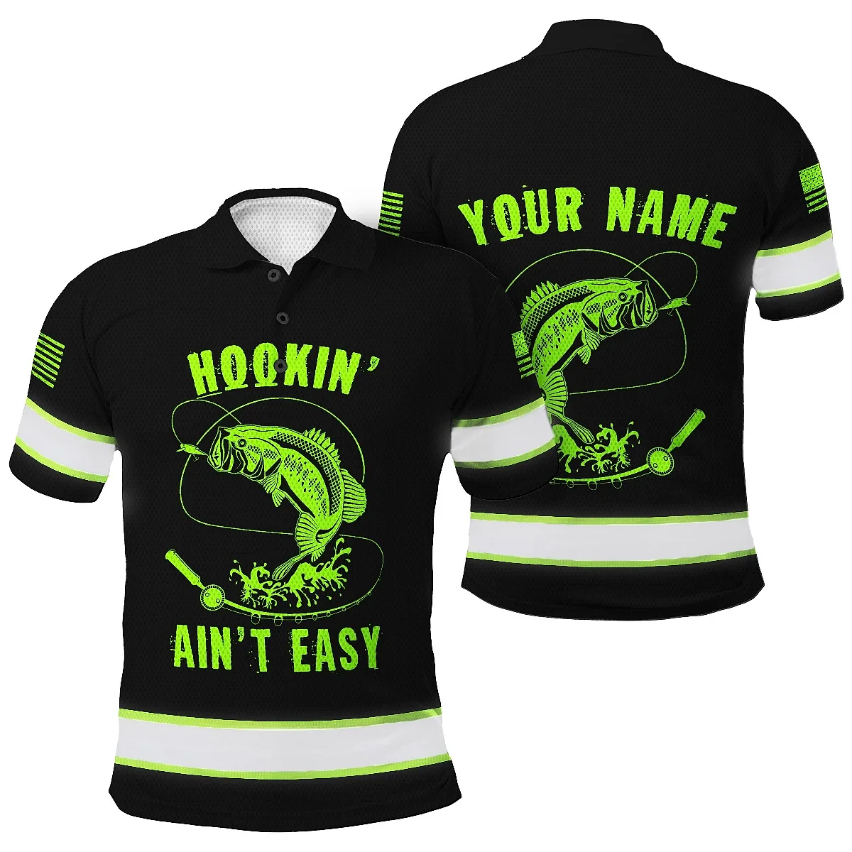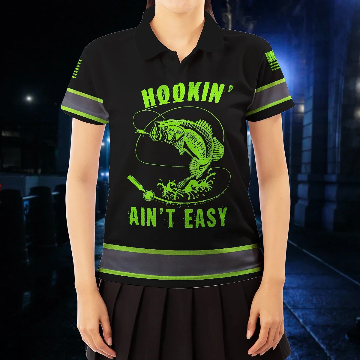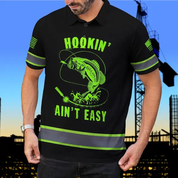 Hi Vis Polo Shirt Reflective Fishing Green Neon Safety Workwear For Fishing Lovers Workers, Runners, Cyclists, Trucker, Operator, Patriotic