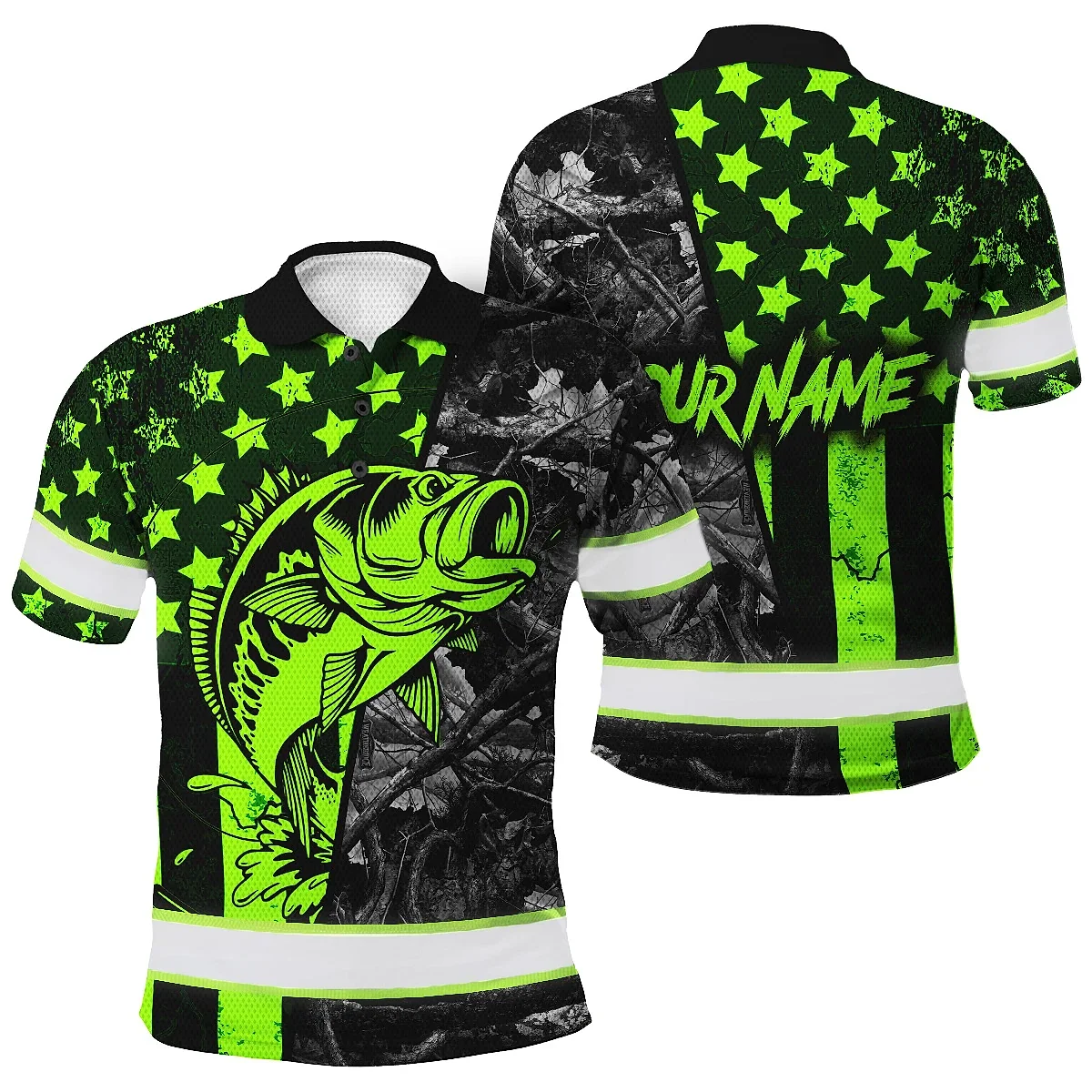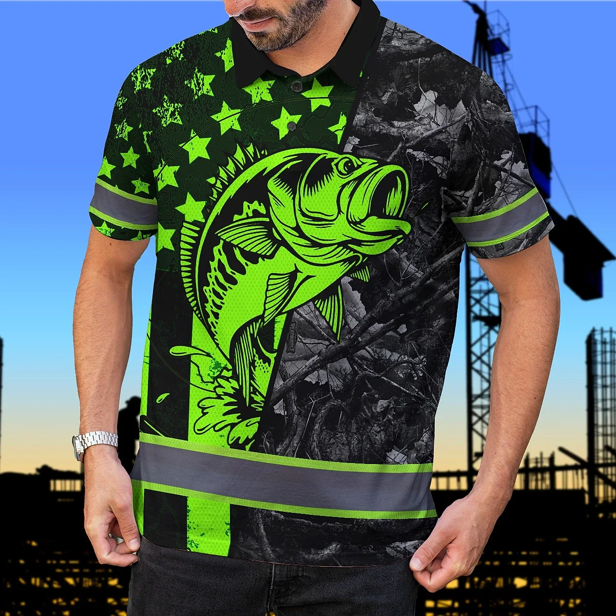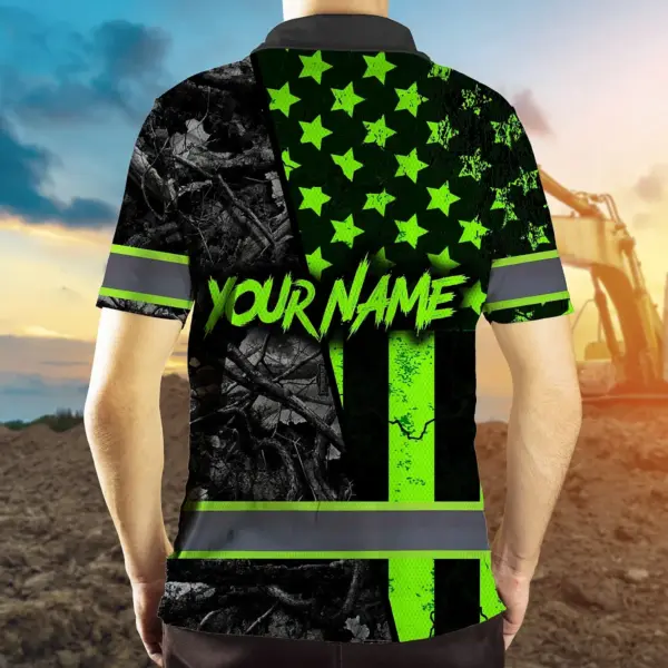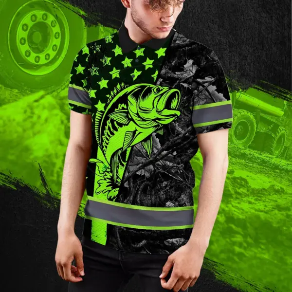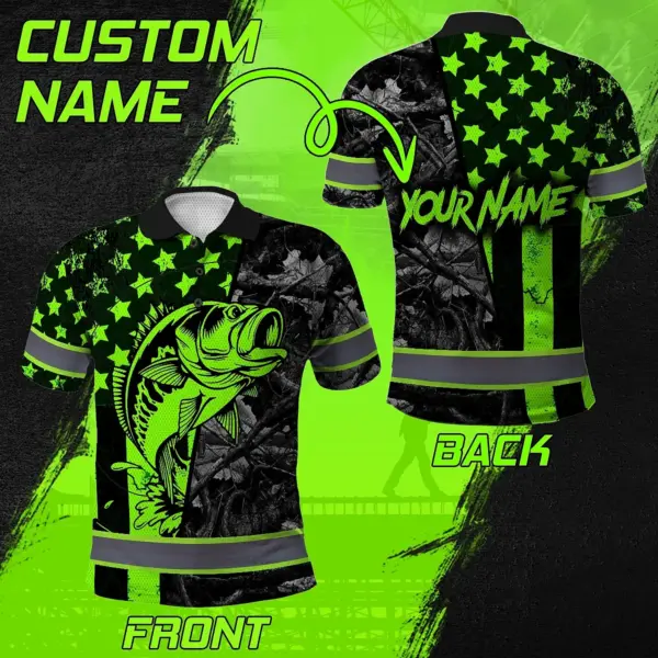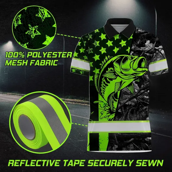 Hi Vis Polo Shirt Reflective Fishing US Flag Custom Name Safety Workwear For Fishing Lovers Workers, Runners, Cyclists, Trucker, Operator, Patriotic