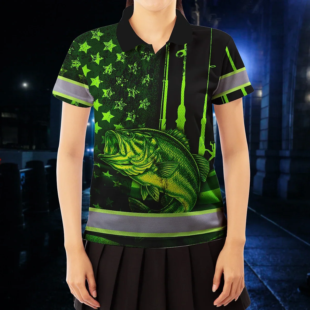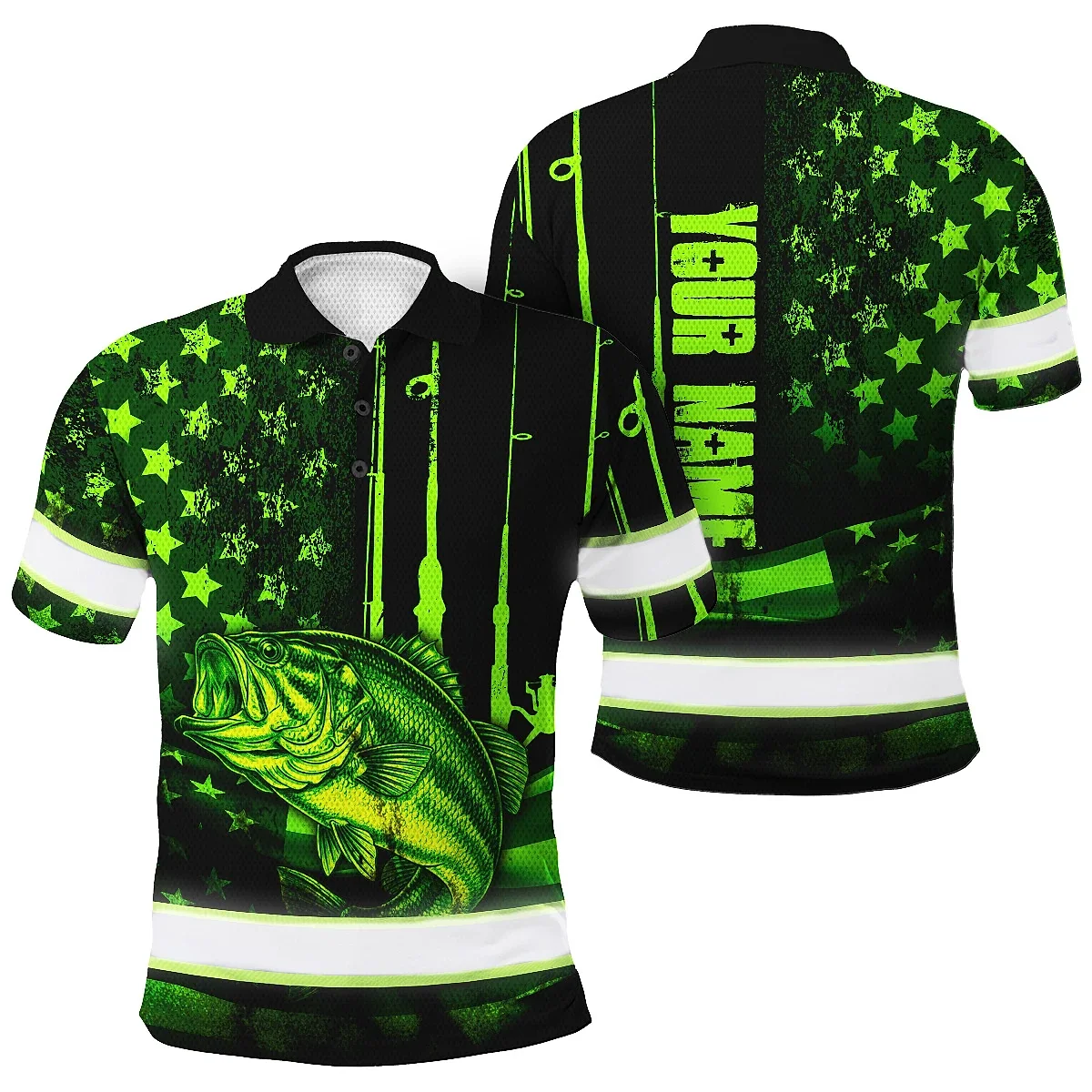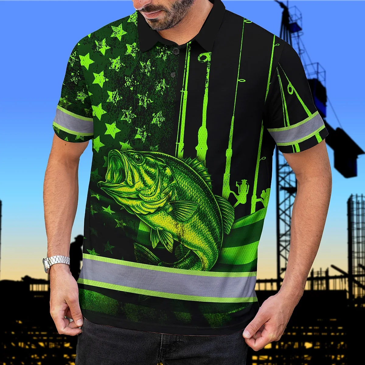 Hi Vis Polo Shirt Reflective Fishing US Flag Custom Name Safety Workwear For Fishing Lovers Workers, Runners, Cyclists, Trucker, Operator, Patriotic