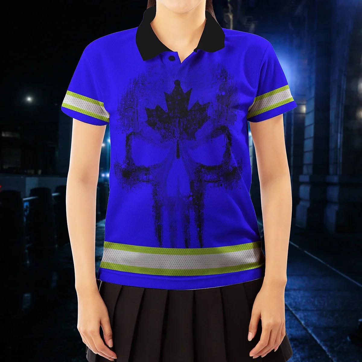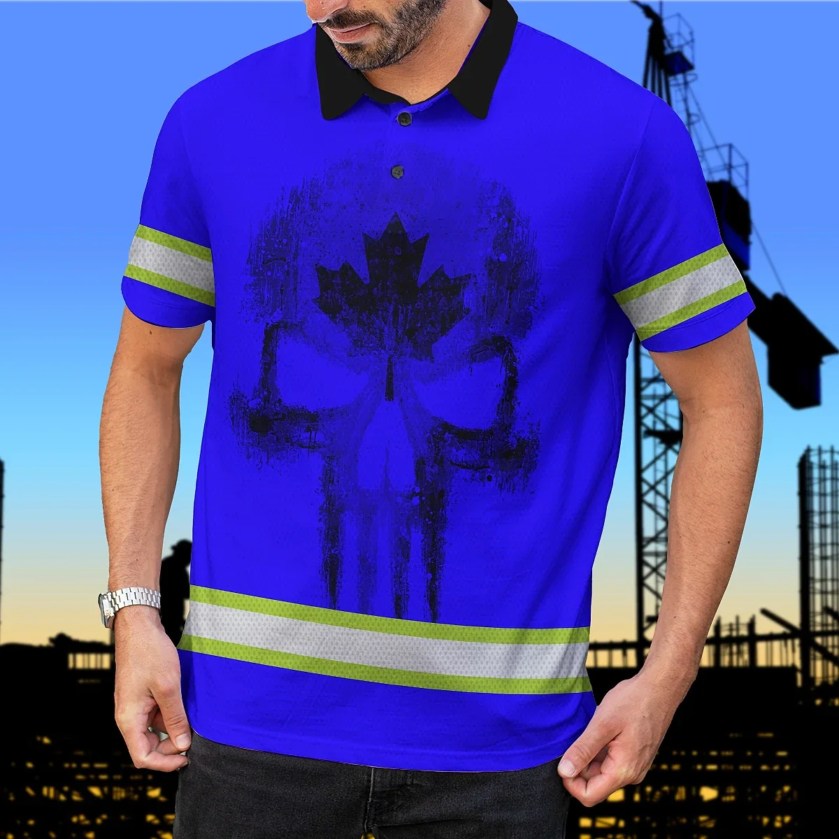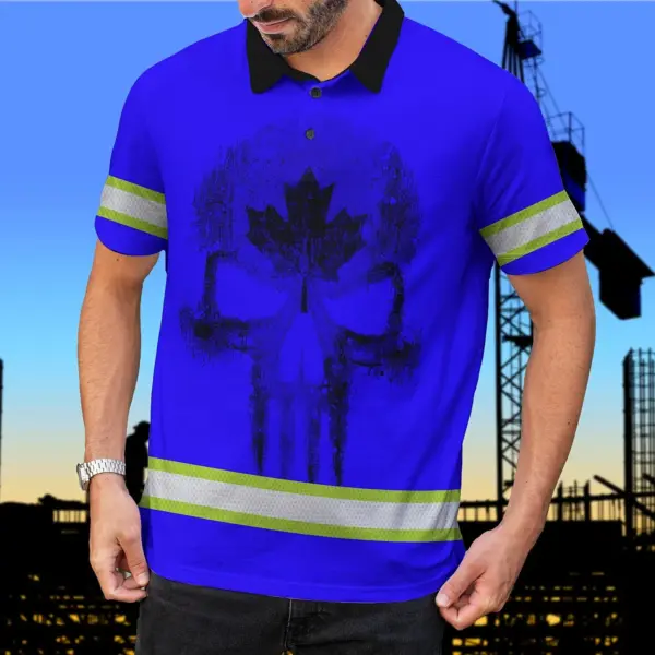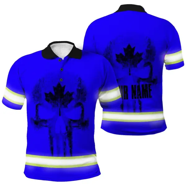Hi Vis Polo Shirt Reflective Tapes Blue Neon Canada Custom Name Safety Workwear For Worker, Operator, Patriotic