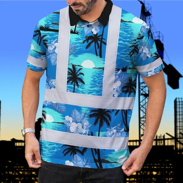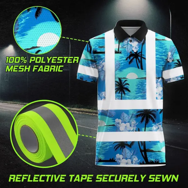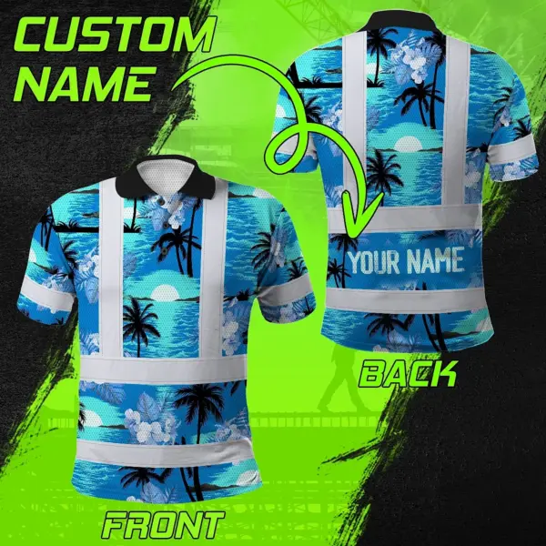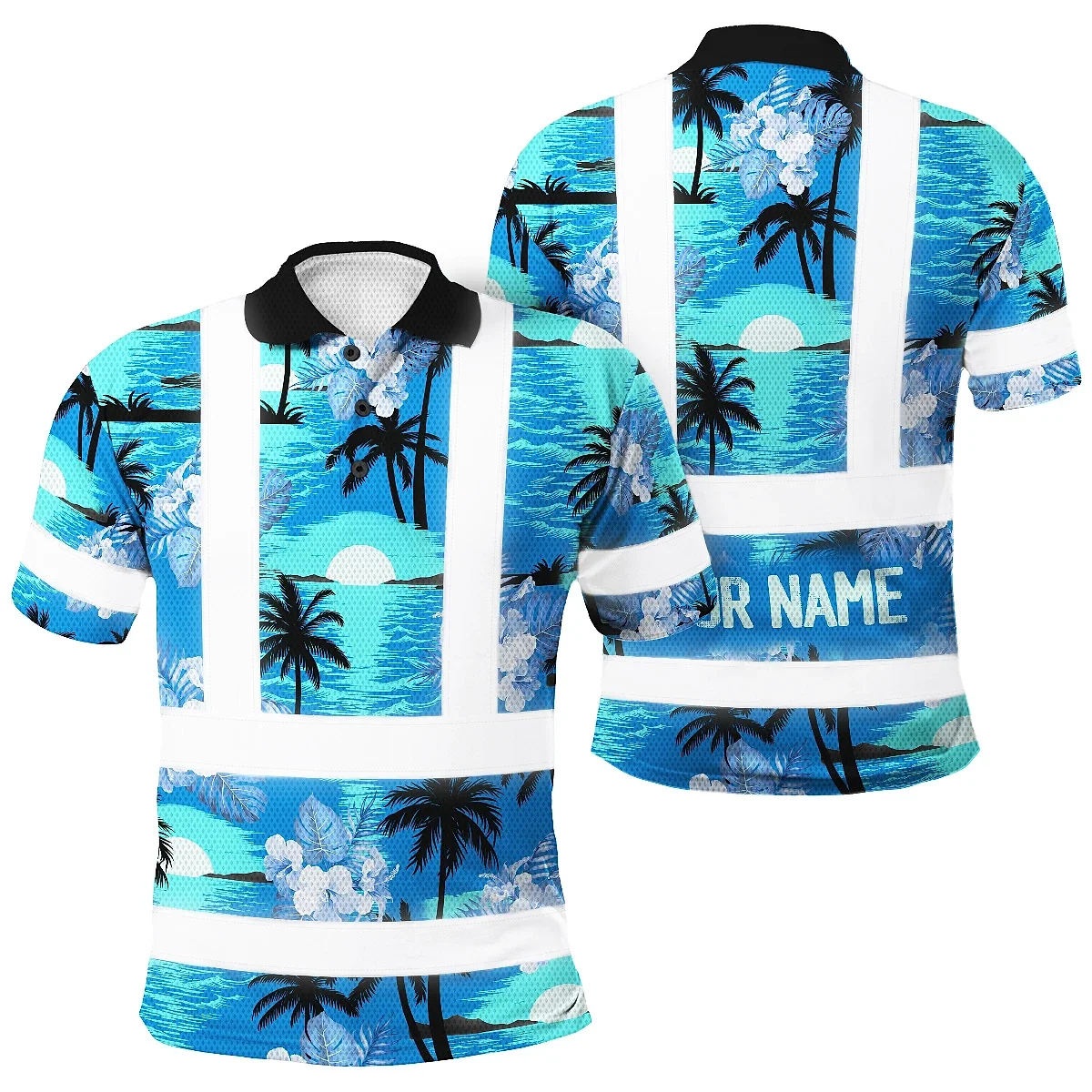 Hi Vis Polo Shirt Reflective Tapes Blue Neon Flowers 4 Custom Name