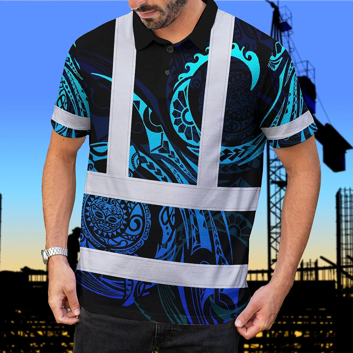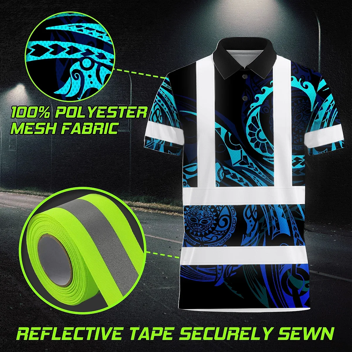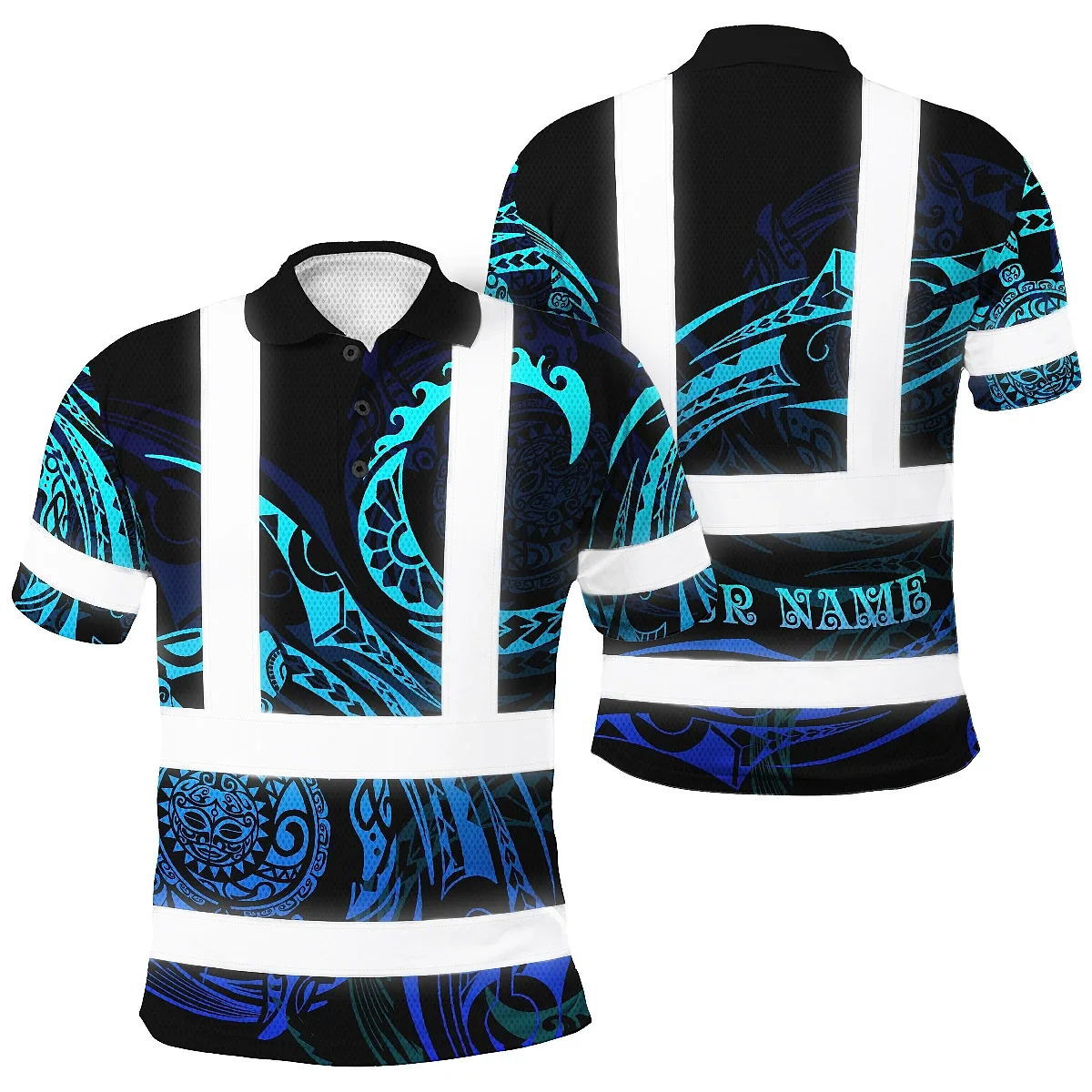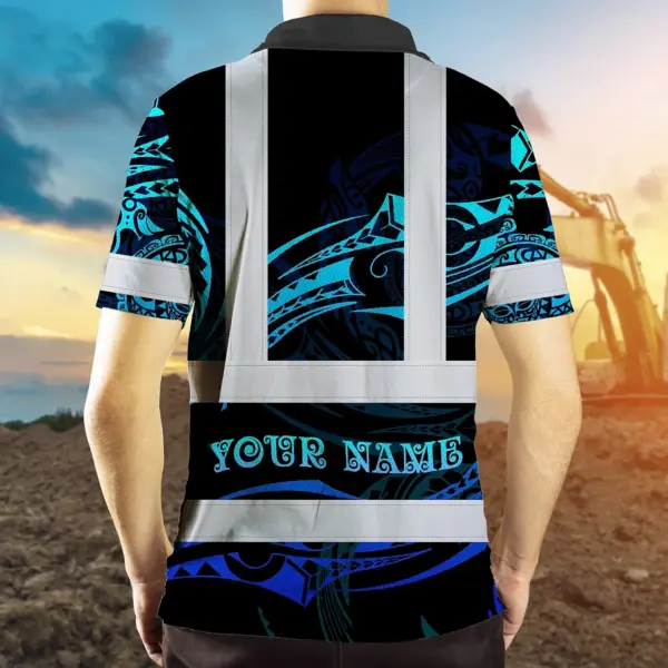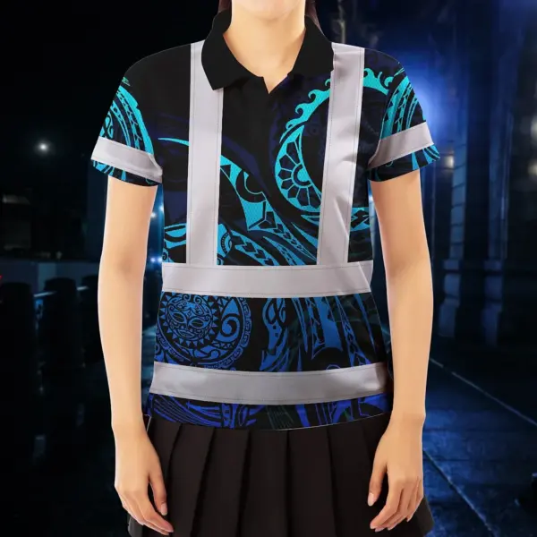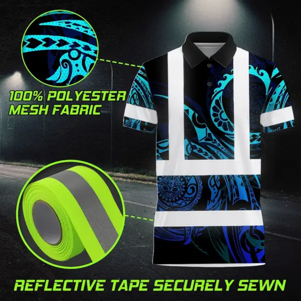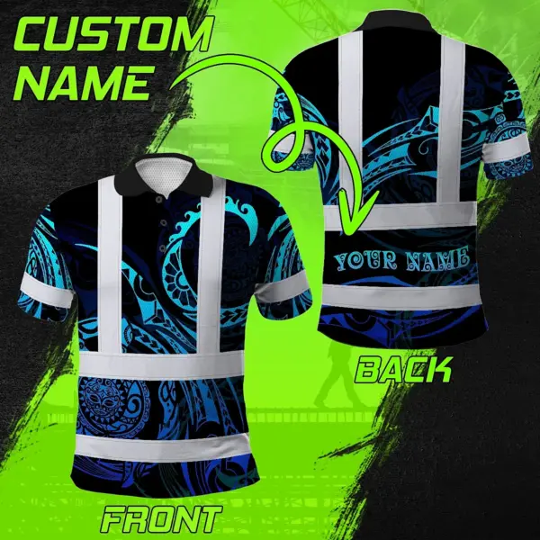 Hi Vis Polo Shirt Reflective Tapes Gradient Turtle Hawaiian Polynesian Tribal Custom Name